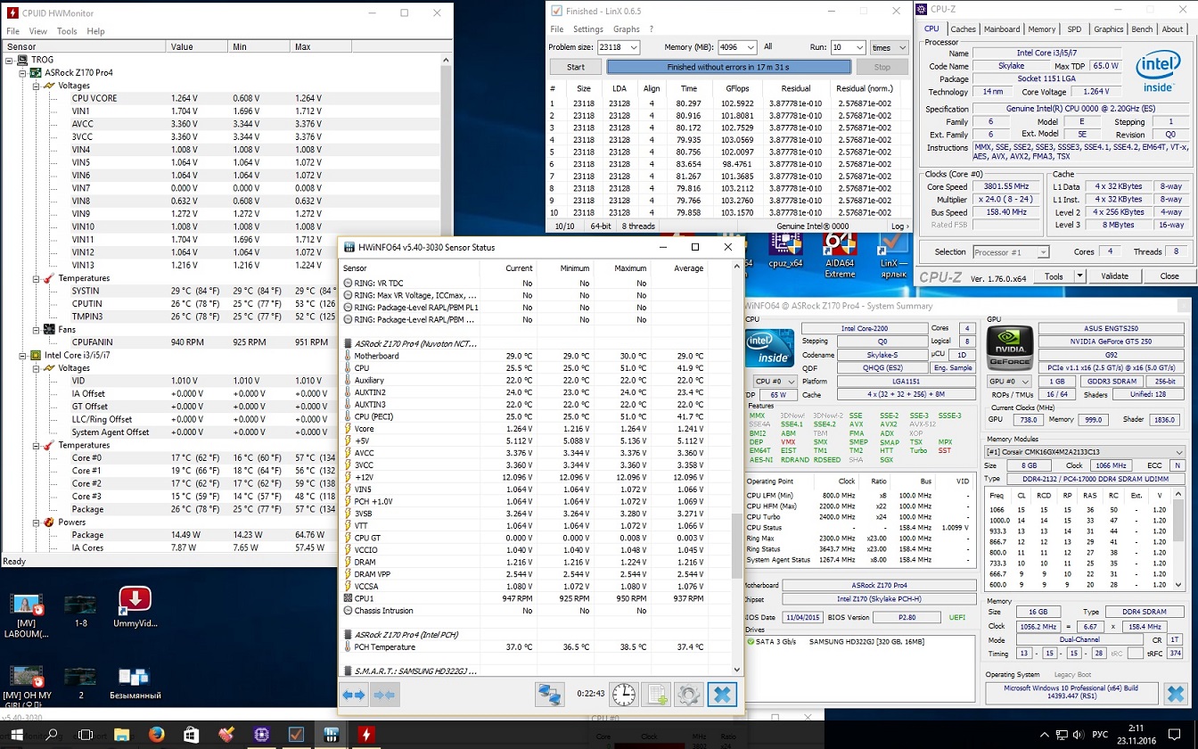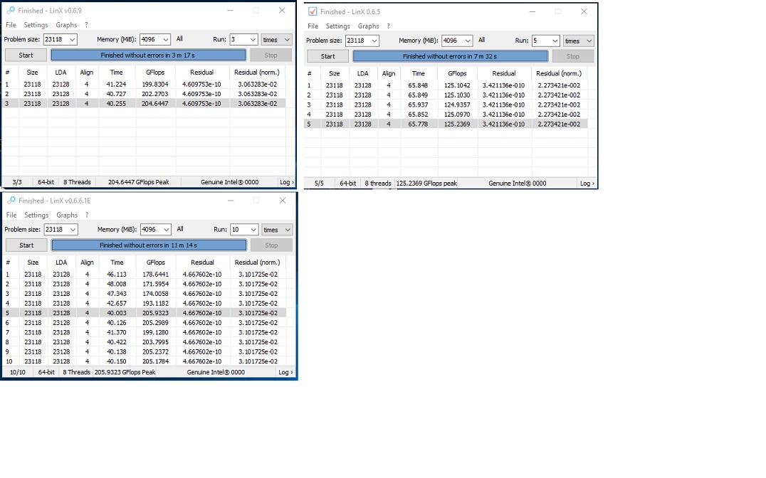 TROG гигафлопсов че-то маловато в linx. Должно быть где-то около 160GFlops или даже больше, порядка 180. Скачайте LinX 0.6.5 последний отсюда http://forums.tweaktown.com/gigabyte/30 ... tools.html 0.6.6 и выше не советую потому что он иногда и в стоке выдает ошибку (хотя нестабильности нет, просто сам глючит). Но можете и новые версии попробовать просто имейте это ввиду.