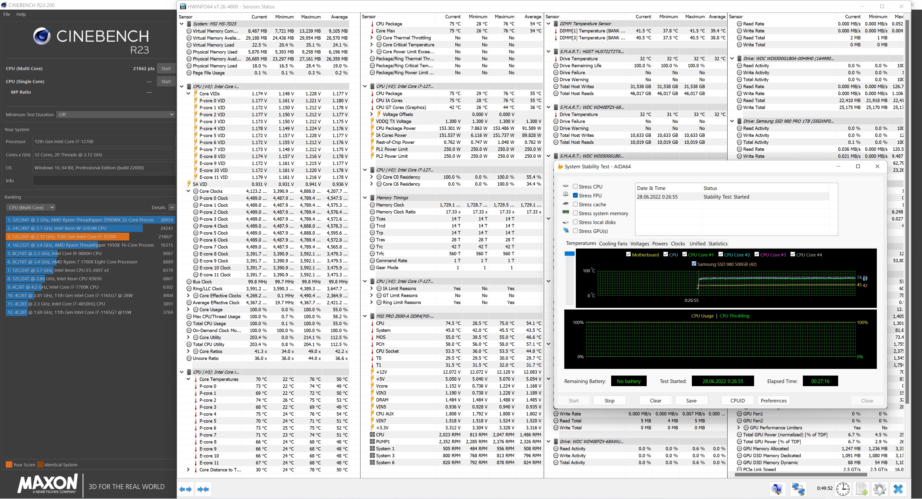 С перемазыванием. Без шайб это вчерашняя установка. Сегодня утром первые 3 теста. Потом установка шайб, прогрев и еще 2 теста с перерывами, со всеми процедурами ниже подробнее. Тест cinebench R23 (180вт) 10мин примерно.