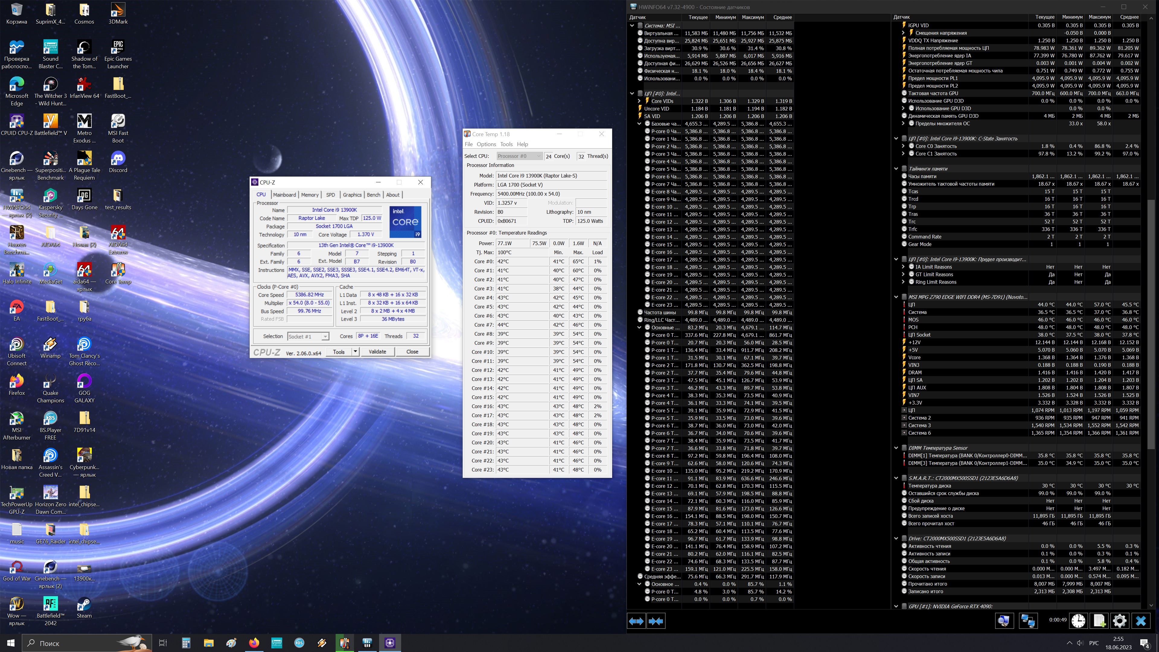 Напряжение ядер должно быть. Как бы то ни было, у меня есть доступ к четырём другим компьютерам и ни на одном из них показатель Core VID в CPU-Z даже близко не приближается к полутора вольтам в любой нагрузке, при этом один из компьютеров уж точно не уступает в мощности i5-ому. Да что уж тут: на топовых разогнанных i9-ых 13-ого поколения напряжение обычно чуть более 1.3, а у меня почти 1.5. Это жуть просто - так жарить проц.