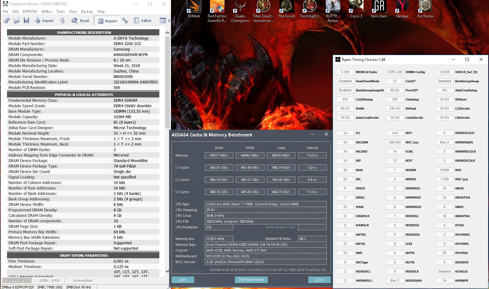 Так вот,господа,еще раз всем привет! До обновы биоса(msi x370 sli plus),когда нельзя было ставить вольтаж на проц ниже 1.3,память гналась спокойно со своими пресетами на 3200,сейчас,после обновы биоса пресеты не работают,может кто поделиться разгоном эдакой памяти,у кого она есть? hyperx predator(HX430C15PB3K2/16) 2x8,в аиде показывают чипы SK hynix