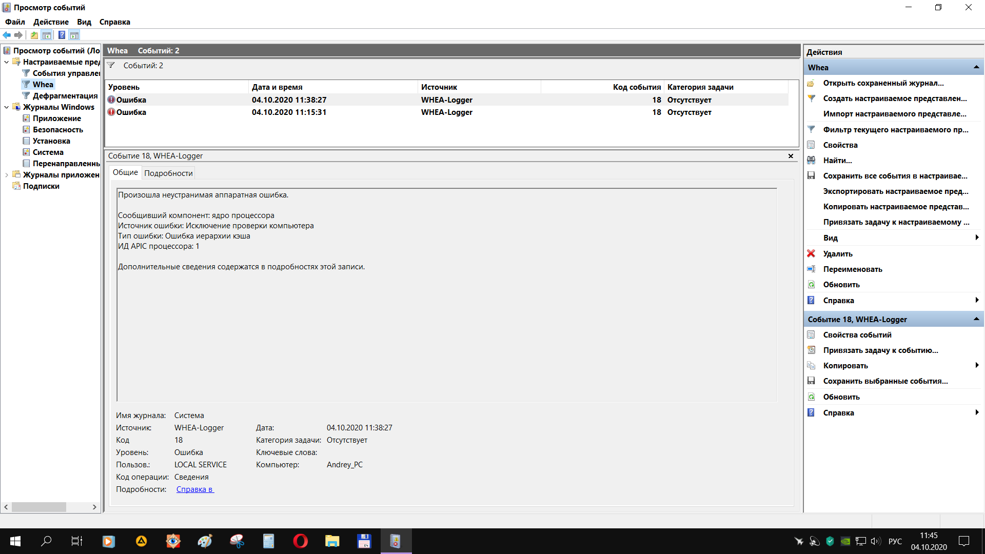 пс.. так, наблюдения. пссс... Хотя все правильно, если это оно, Те один ссх выдал ошибку при тесте, потом второй и вот и 2 срабатывание whea logger, имхо