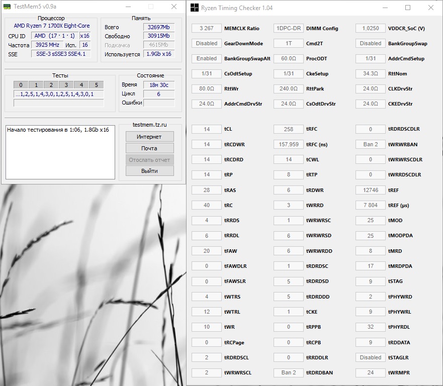 идентичная работа на двух 2700х и 1700том , нет отличий вообще в настройках, жались тайминги аналогично и procODT идентичен