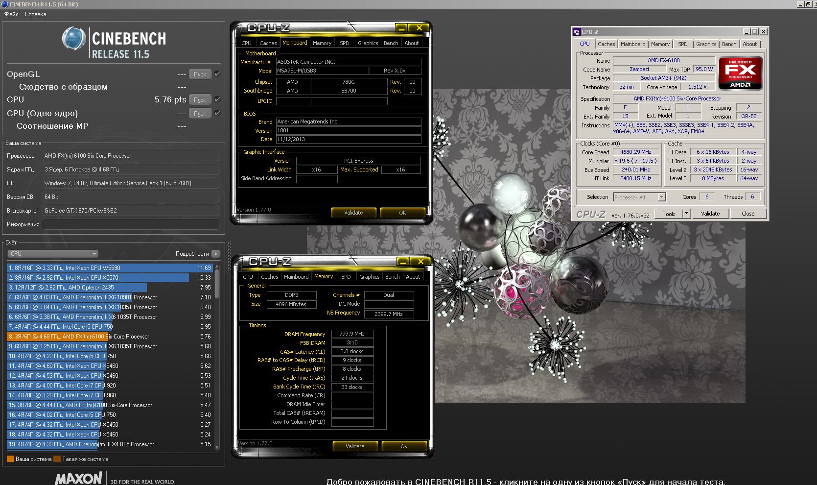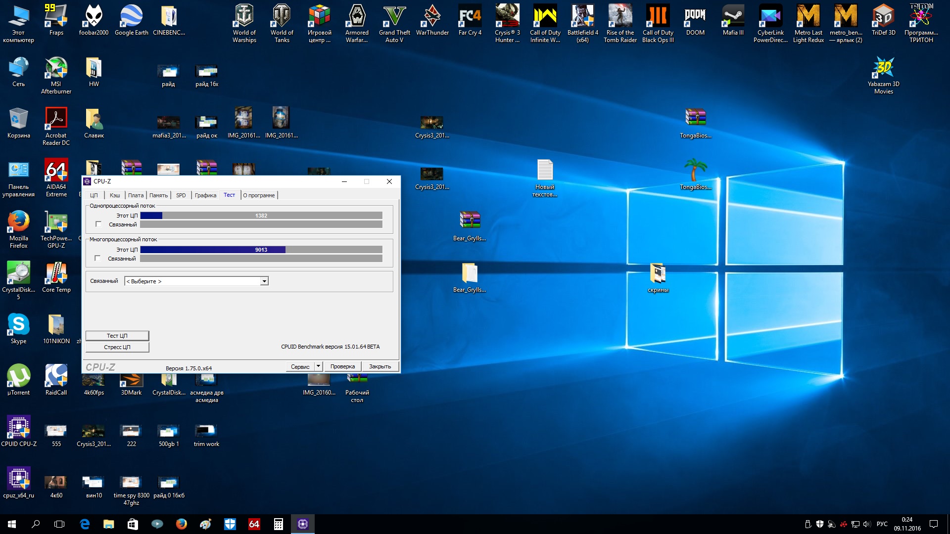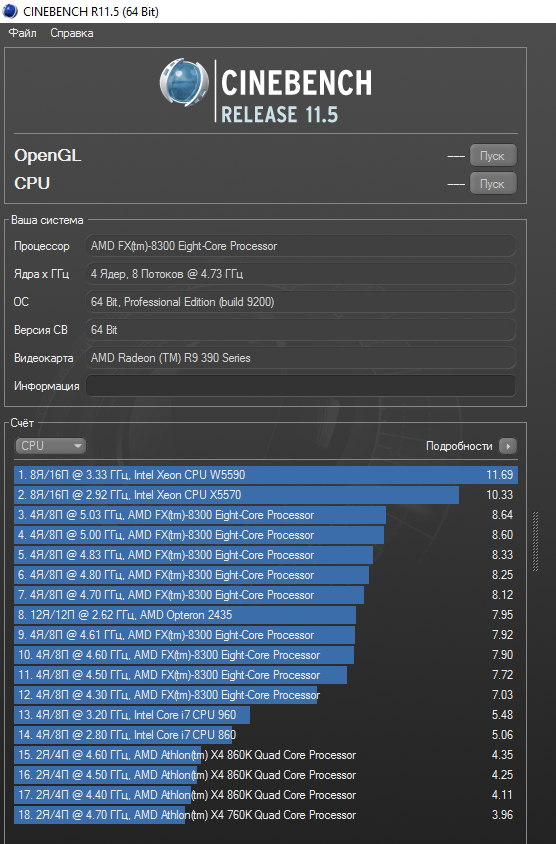 если прикинуть +-4.7 против 4.833 как положено,дальше,у тебя вин 7 у меня 10 ,аэро ты судя по всему вырубил а значит и автозагрузки итд подшаманил ведь скрин есть у тебя и с 9500поинтов!!!,я же на винде годичной давности и еще к томуже перекинутой с 775 сокета без переустановки и никакие приоритеты не подкручивал..тупо запустил заскринил и сюда.. .и да,память у меня не супер пупер и работает райд и активен асмедиа контроль,а они тоже немного отжирают ,вывод? в топку ваши флопсы!!!