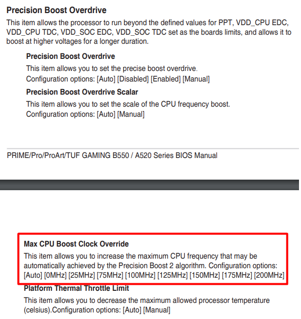 При этом методе игнорируется лимит EDC, лимит TDC настраивается исходя из возможностей VRM, какой ток в амперах материнская плата может максимально выдать не перегревая VRM, лимит PPT это максимальное потребление процессора, особенно актуально если система охлаждения очень инертная. 5900X/5950X упрутся в температурный лимит в 90°С на самом горячем CCD, 5600X/5800X в 95°С, эти значения можно уменьшить при помощи настройки Platform Thermal Throttle Limit. Последние 5°С до этого лимита дают приличные пенальти к бусту.