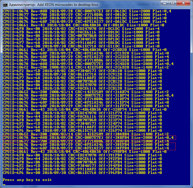 есть почти совпавшие строки. отличие в Rev или CRC или Plat. но почти не считается. необходимо вставить нужные микрокоды взамен почти совпавших. Я ПРАВ? если это аккуратненько сделать HEX EDITORом? и какой (из верхнего списка) куда (в нижнем списке)?