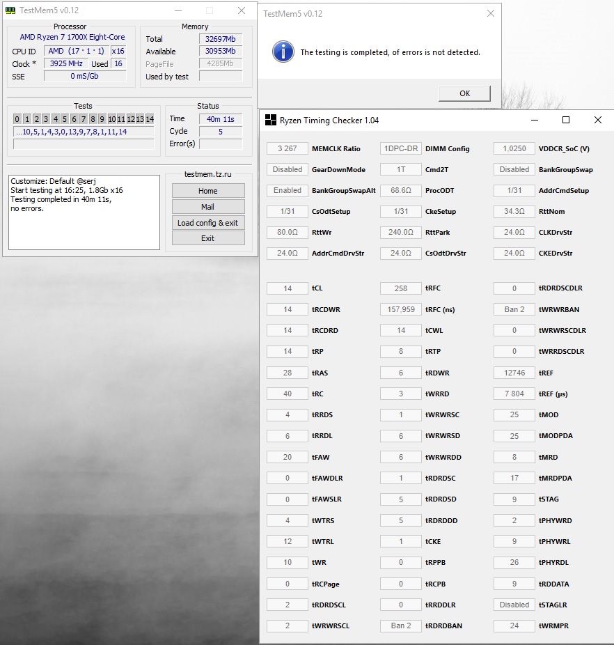Почистил системник, в т.ч. почистил контакты РАМ изопропиловым спиртом. После этого заново попробовал запустить систему при procODT 60 ОМ (24-24-24-24) - система даже на стартанула. Хотя при этих же настройках система раньше пускалась и даже когда-то стабильно работала . При этом мой старый профиль на 3266@procODT 68.6 тоже стал нестабилен. Стала отваливаться фоновая программа для мыши (LGS). Запустил ТМ5 с профилем 1usmus - так и есть ошибки в 5 и 6 тесте. Понизил напряжение до 1,37 (было 1,38) выставил нагрузки 20-20-20-20 -система проходит ТМ5. Могла ли чистка контактов так повлиять ? Или же это "магия" БИОС , которая здесь уже неоднократно поднималась форумчанами?