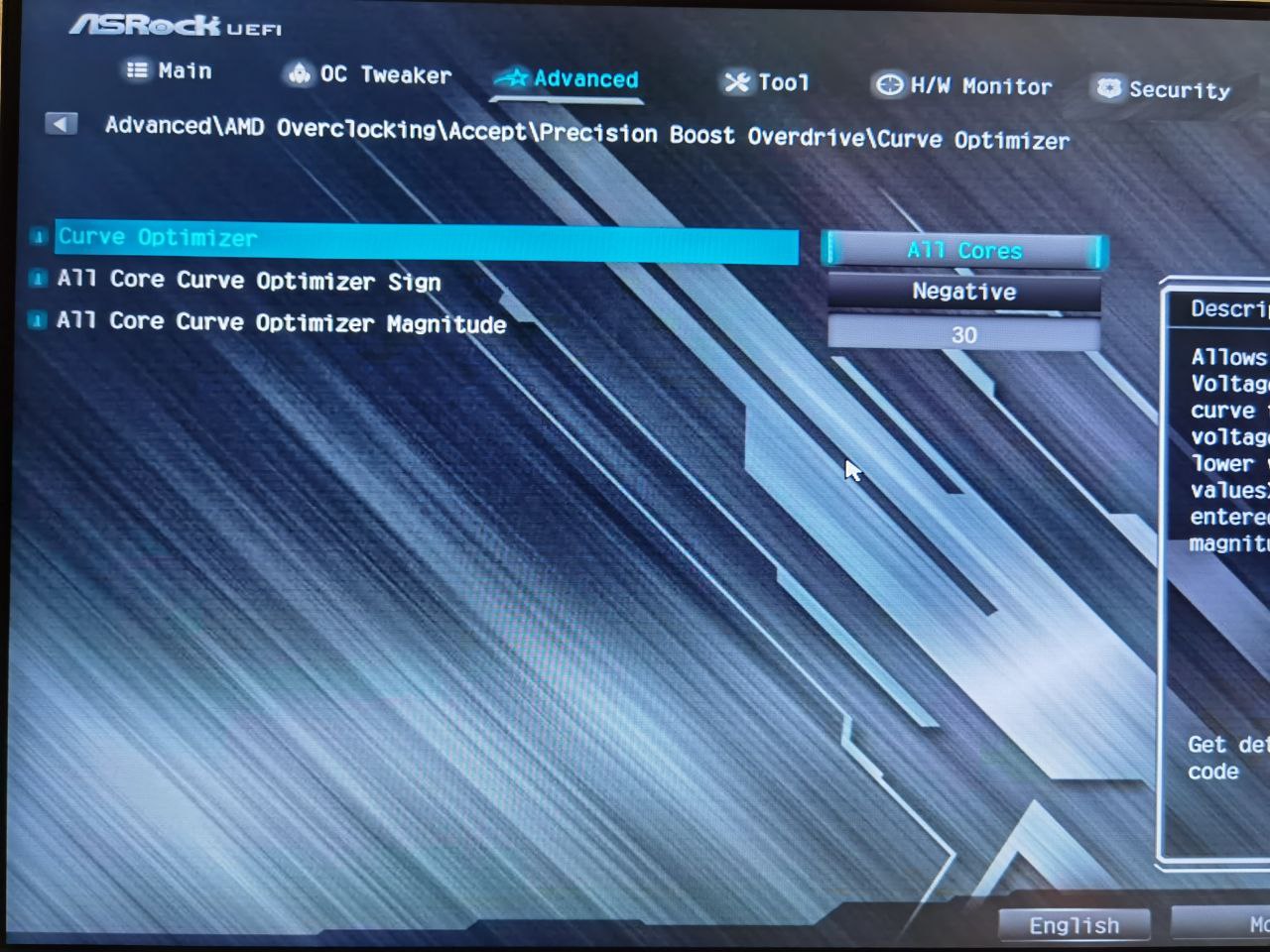 С курвой никаких сложностей: если она есть в биосе, то просто включаешь PBO и ставишь -30 на все ядра в Curve Optimizer. Почти все 5700x3d нормально работают с такими настройками. Больше в биосе настраивать особо нечего на этих процессорах (можно конечно выставить еще температурный лимит, но после настройки курвы он обычно уже не нужен)