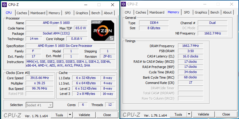 - Обычно поставляется в коробке с системой охлаждения Wraith Spire RGB (это круглая конструкция из целого куска алюминия с медной вставкой-испарительной камерой в основании и вентилятором с кольцом разноцветной подсветки, крепится к задней пластине разъёма AM4 четырьмя винтами). - Штатно имеет базовую частоту 3.0ГГц, частоту 3.2ГГц (технология Turbo Boost) при обычной многопоточной нагрузке (Blender n-cores render) и 3.75ГГц (технологии Precision Boost и XFR) при однопоточной нагрузке (Cinebench R15 single core). - Штатное напряжение питания 1.1875В. Может возрастать до 1.3В на отдельных ядрах во время работы Precision Boost и XFR. - Очень энергоэффективный, требования к СО (TDP) - всего 65W. Энергопотребление порядка 10Вт в простое и 85Вт в обычной многопоточной нагрузке (Blender n-cores render).