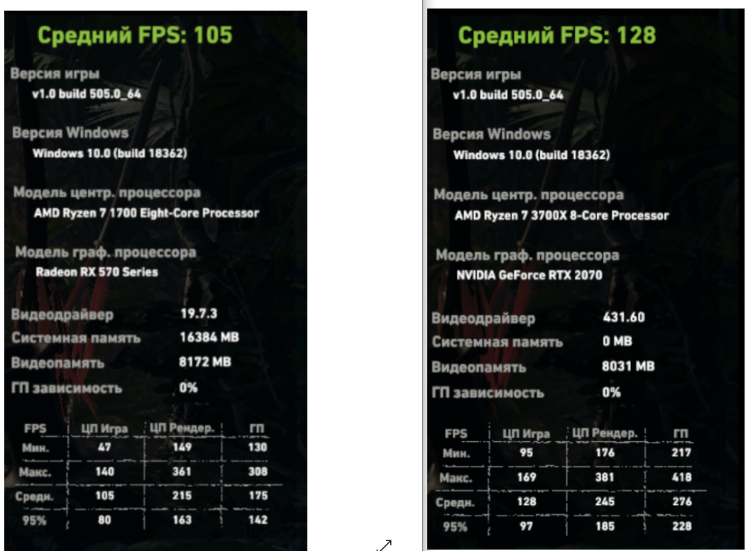 затем, что его 2080 мою 2070 обгонит в ультрах а так, как вы видели, на одинаковой версии с одинаковым презетом и одинаковой памятью - у нас результат одинаковый