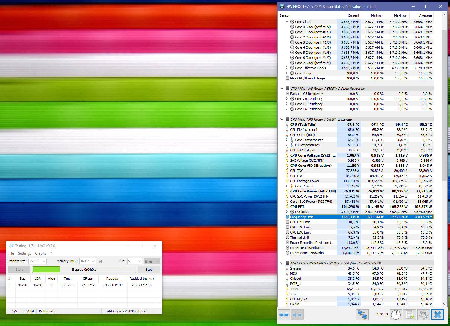 повторяю, hwinfo упор в ограничения не показывает, но частота падает даже ниже базовых 3800. это в linpack 2021, в 2017 такой херни нет. частота падает даже в игре dying light 1, хотя там потребление не выше 100 вт.