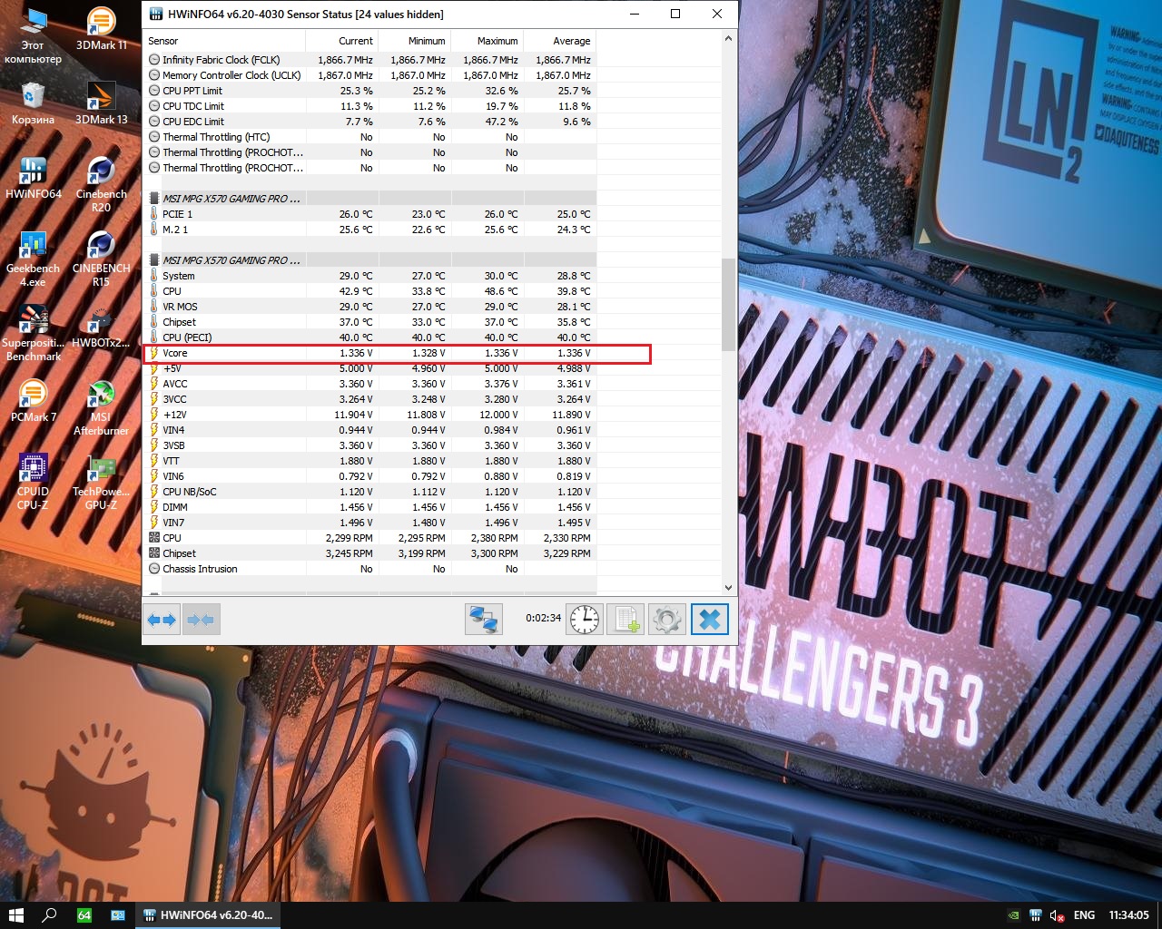 Remarc понятно, там у меня под нагрузкой с 1.25 поднимается до 1.264. Попробую на 2 и 3 моде потестировать.