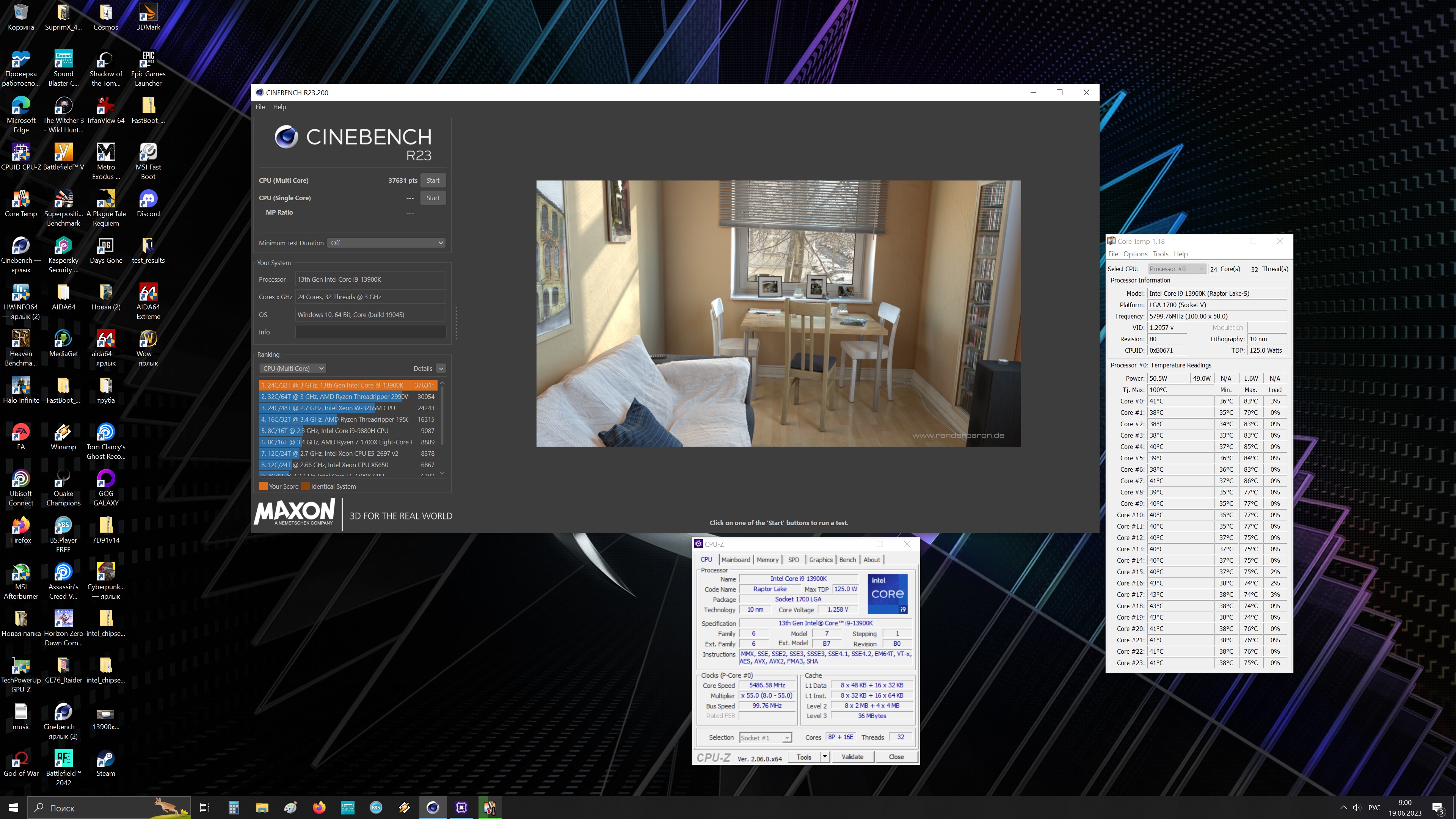 У них часто открытый стенд, да и хороший кулер обычно ставят, а не снеговик какой-нибудь ) И температурой в комнате никто не делится. Я когда купил 13600 свой и первый раз запустил, делал обзор на сайте Муська. Дело было зимой, мой текущий на тот момент кулер (дипкул нетвин в2) не вытягивал, да и я тогда так и не подружил толком плату Асус Туф В660 с процом, не оффсетом, ни курвой, никак, теорию касательно 13-й серии еще не вкурил тогда. И чтоб мне пройти сайнбенч р23 и темпа не улетела в сотку, открывал дверь на балкон, и только тогда проц проходил сайнбенч р23 с температурами 90-95 градусов )