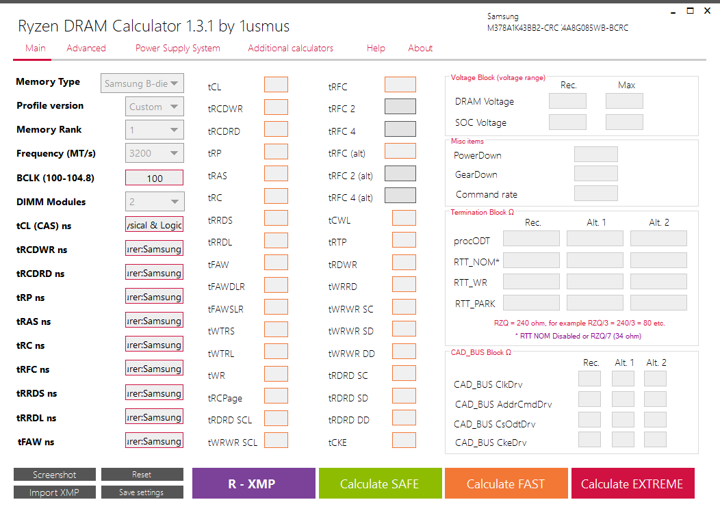 Я делал как на видео, я не знал, что ещё нужно в ручную выставлять некоторые параметры. Я меньше недели сижу на АМД платформе, до этого онли интел, там я ничего не делал и так норм было ))) так что я ещё "нуб" Объясните глупому))) почему Samsung OEM потому что она продаётся без упаковки? просто чип же b-die???? Что означают серые поля в калькуляторе и что значат alt1, alt2