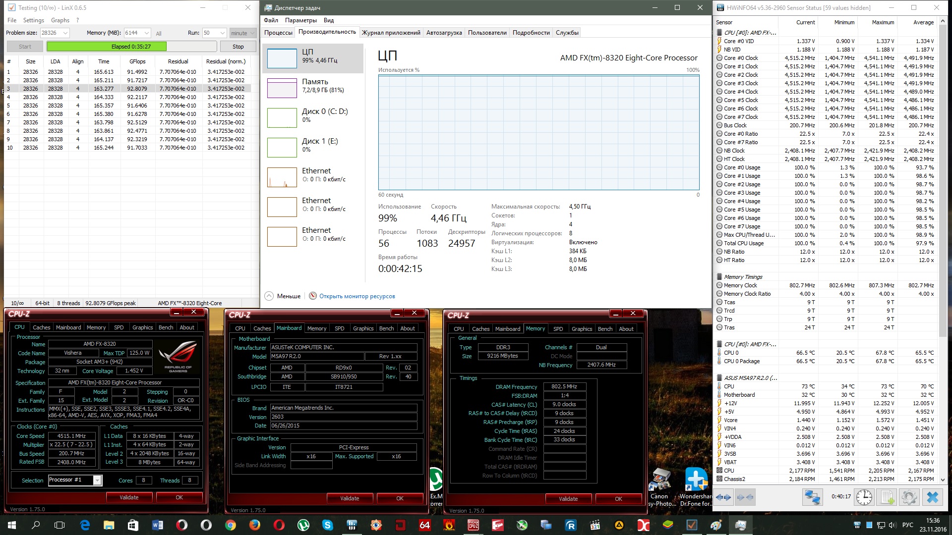 а Gigabyte GA-990FXA-UD3(rev 4.0) справляется ,даже может 4.9 Ггц взять если нормально охладить а пока чуть не дотягивает до 16.08 FPS но это дело поправимое #77