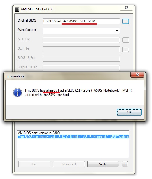 Ни Aida64, ни SLIC TollKit V3.2 не видят зашитого в мой биос слика. Такое может быть? Ведь процесс обновления биоса прошел успешно... В трех папках orig, 771, 771slic файл биоса весит абсолютно одинаково, разве так и должно быть? В модифицированный же добавляются микрокоды и сам слик, следовательно и вес должен быть больше. Проверьте плиз, может реально что не так...