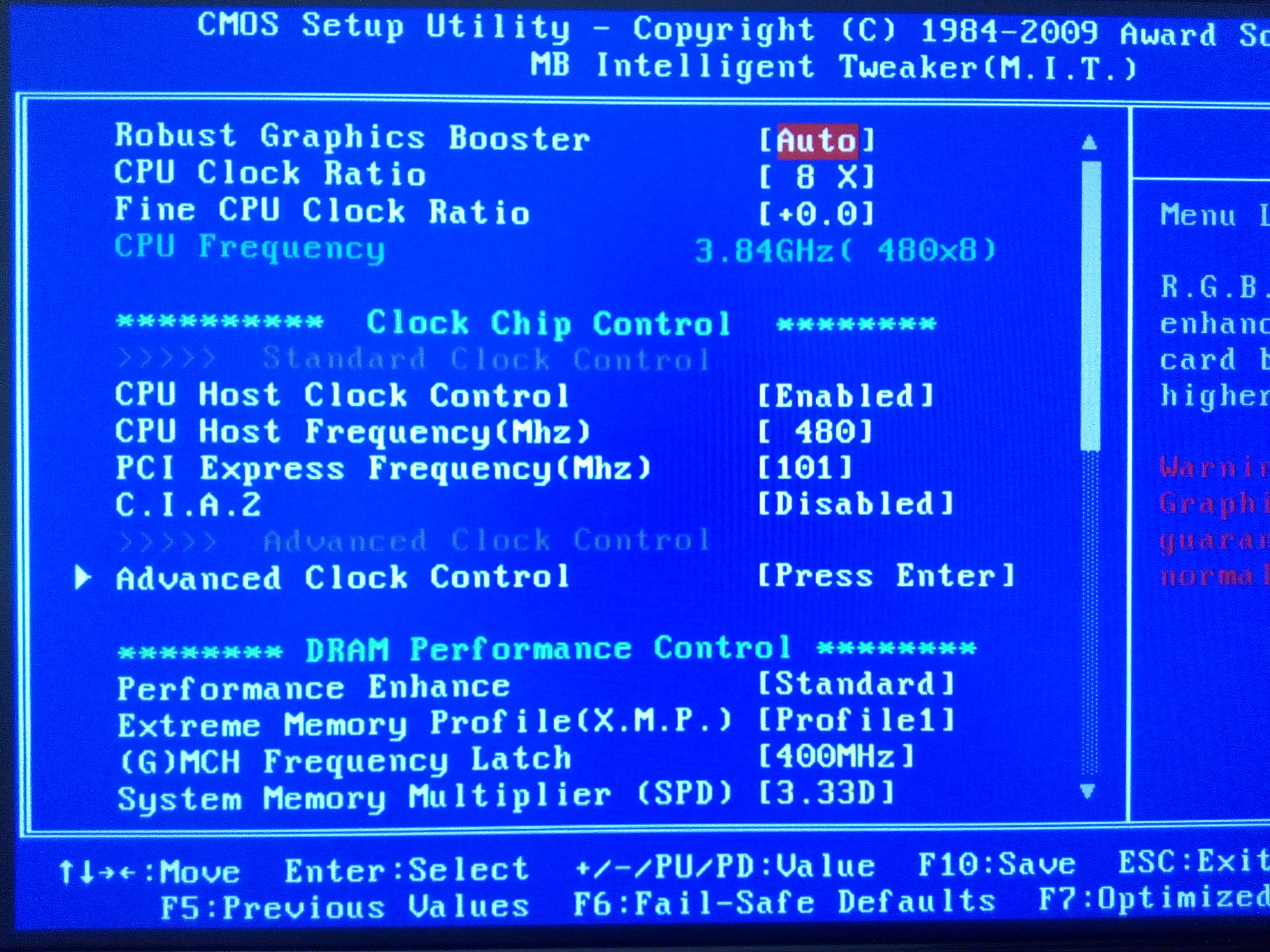 кароче, у идеафикса на мою маман есть 2 биоса F8 и F12e, так вот всегда стоял ф12, но наконец то дошли руки попробовать ф8(писали он стабильнее) и правда, шину 500 берет ноу проблем(на ф12 выше 480-не включался). захотел всё таки взять 4 ггц. поставил там 500 шину и повысил напругу на проц и на северник до 1.25 вроде, но при нагрузке в аиде(цп+фпу+кеш+озу) зависает(без синьки, ни на чё не реагируя) и через 10 сек ребутится. хз чё ставить по вольтажам, ветку уже как полгода не читаю-всё забыл. поэтому прошу чтоб подсказали чё ставить на север и на юг, и также большой вопрос к вкладке advanced clock control(2 скрин)(вроде телько на маманах гиги), почитал-какие то тактовые сигналы могут помочь в стабильности разгона