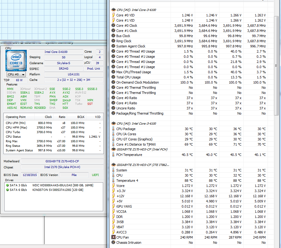 P.S. для статистики: I3 6100, 1.4v, 4400mHz - fail. Опытным путем заметил, что VCCSA неким образом все же влияет на результат. При повышении напряжения на VCCSA до 1.115v, проц некоторое время сохранял стабильность (раньше сразу падал) при 4330мгц, при 1.375v (долго тестить не стал, выключил). Дальше 1.4v уже не интересно, ввиду отсутствия перспективности сей затеи.