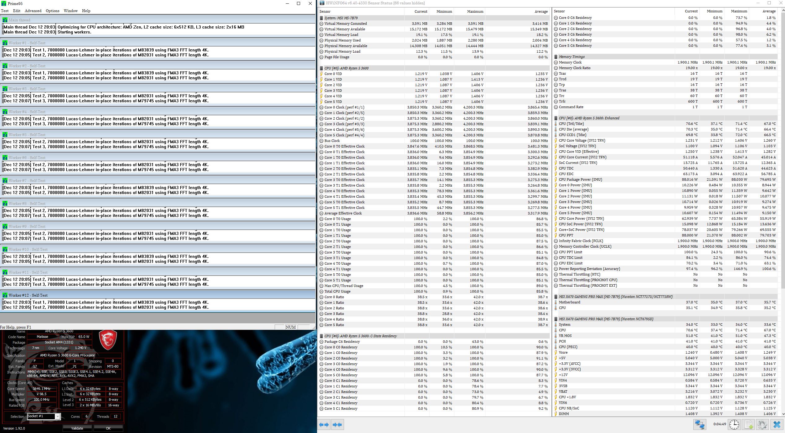 Привет, приобрел ryzen pro 3700 по скидке, после 1700 конечно чувствуется прирост, что радует. Попался bf 2012, пока ядра не трогал, но с gelid tornado с включенным бустом в linx до 95 градусов, печет. Пока нет возможности поменять охлаждение, хочу без буста выставить множитель и напряжение вручную. Судя из шапки как понял безопасное напряжение с avx 1.3 на ядра? А для памяти и soc какой порог напряжения? Сейчас 3800 cl 16 1к1 мать дает под нагрузкой в стрес тесте на память 1.408 soc 1.12 (в биос выставил 1.38 и 1.1 соответственно llc не трогал).