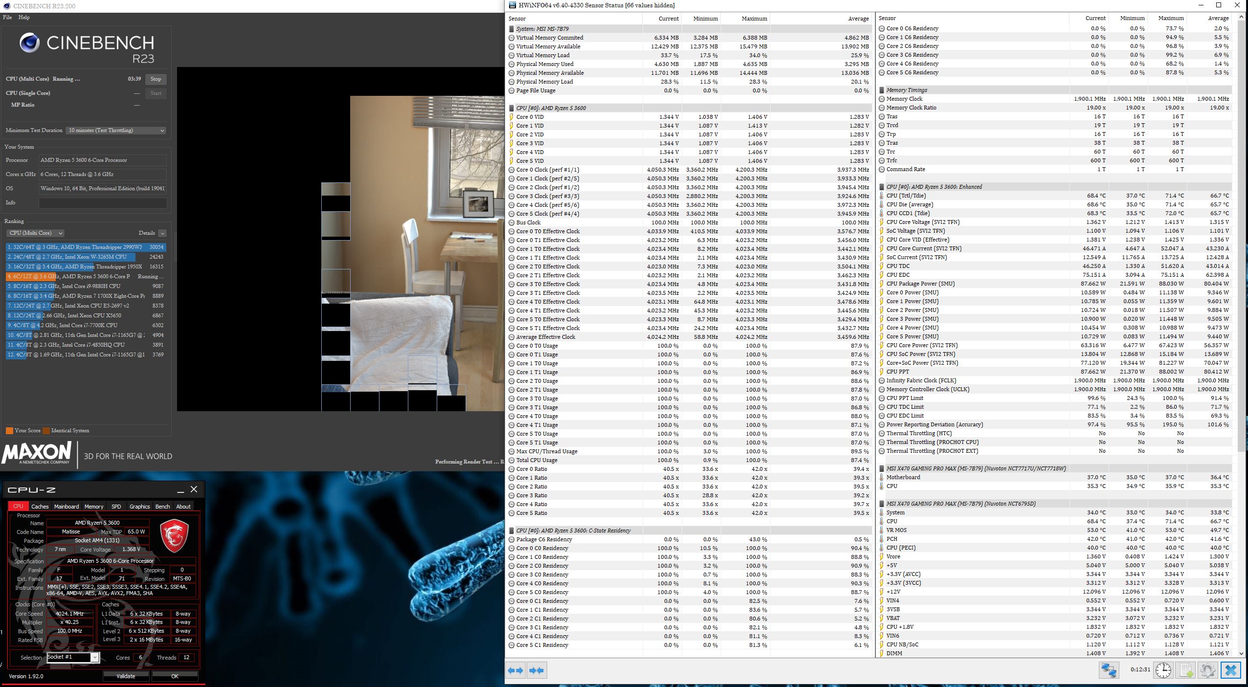 Sabotender Prime ещё ладно, половина беды. Запускаю CB R23, перезагрузки. Самое не понятное - это то, что сброс сделал BIOS, восстановил только разгон памяти, дальше решил потестить просто на стоке, что Prime, что CB R23, посмотреть сколько будет напряжение накидывать и вообще какие частоты в принципе будут.
