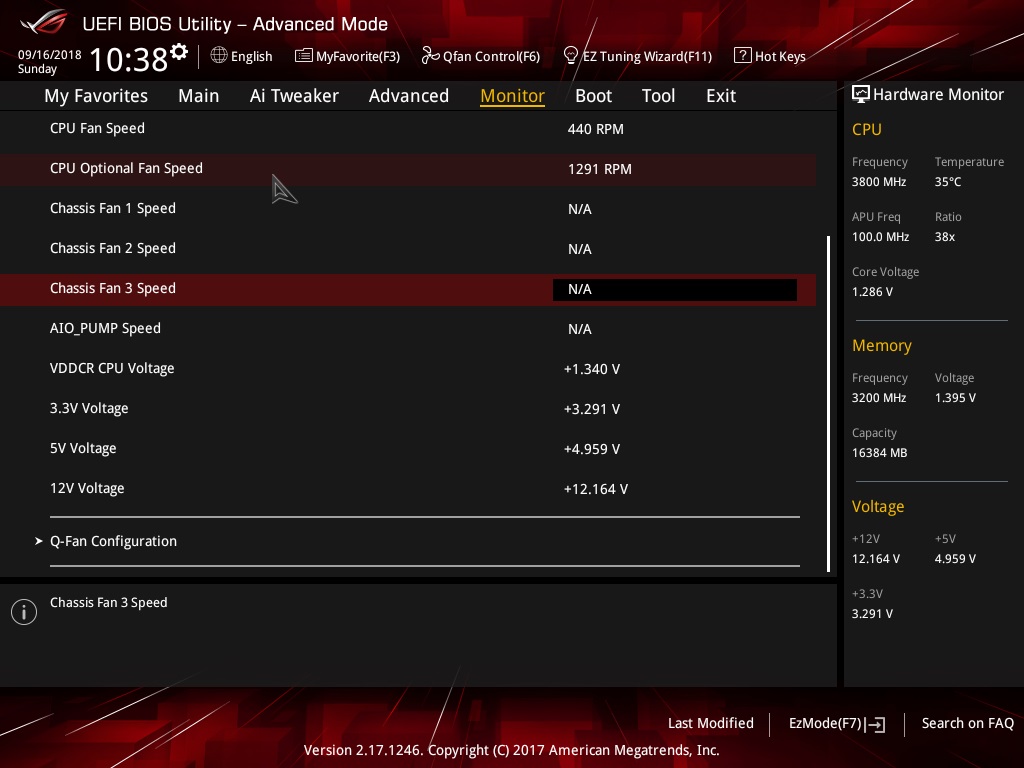 Вентилятор CPU OPT молотит на одной частоте.