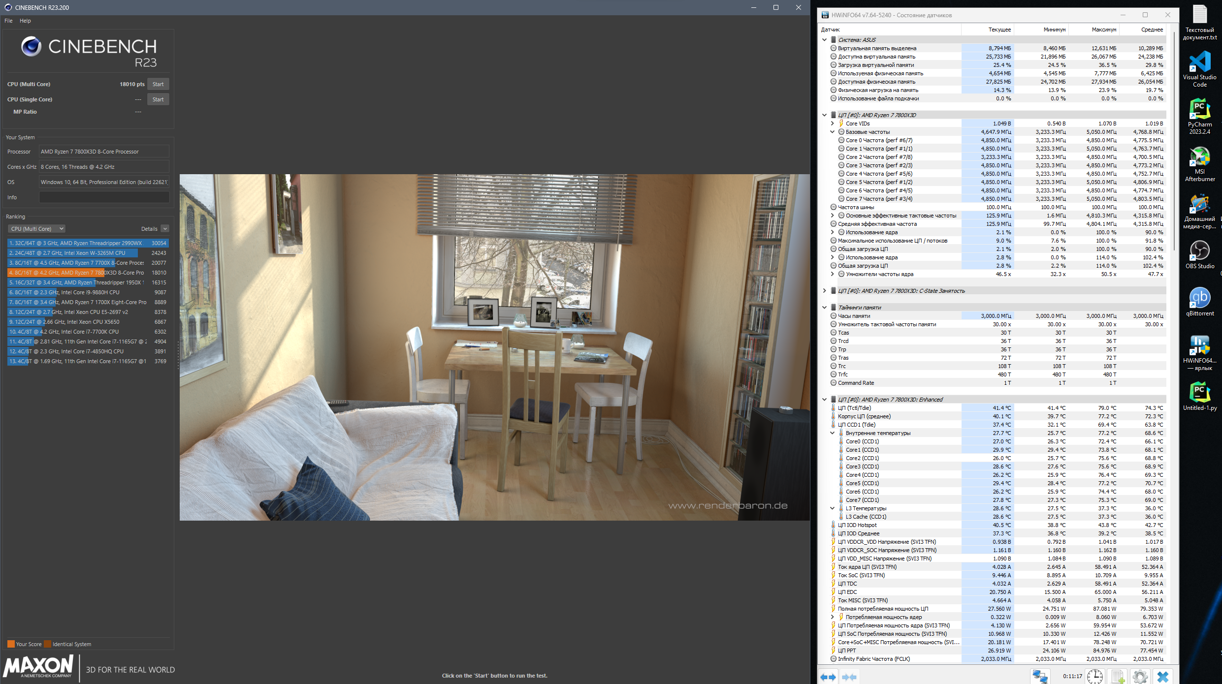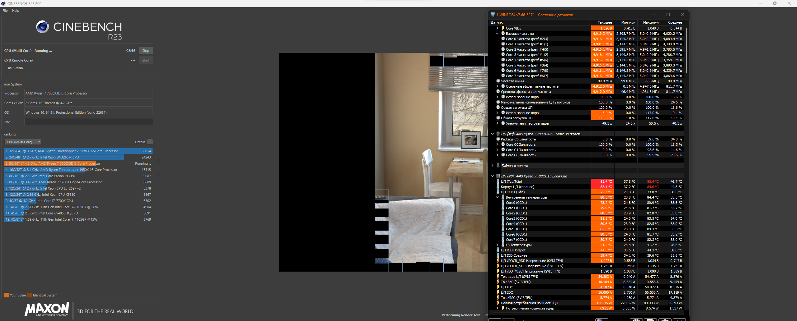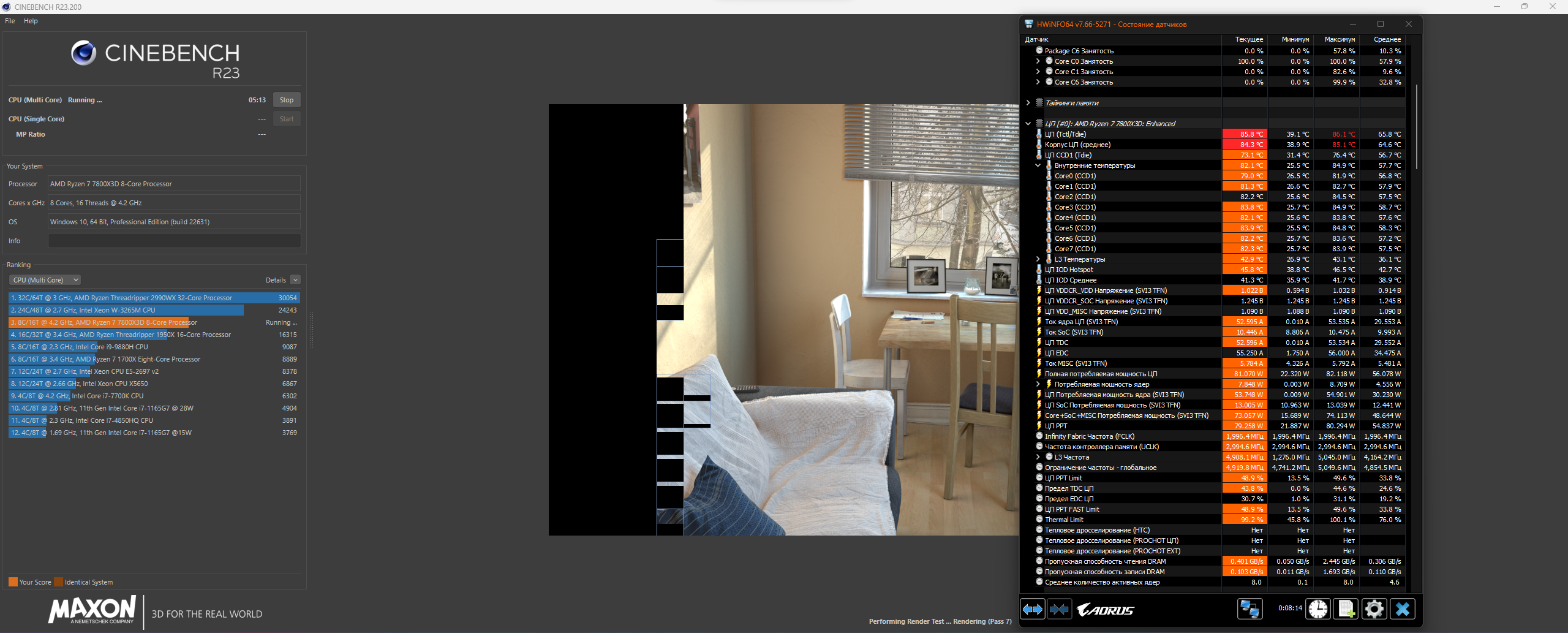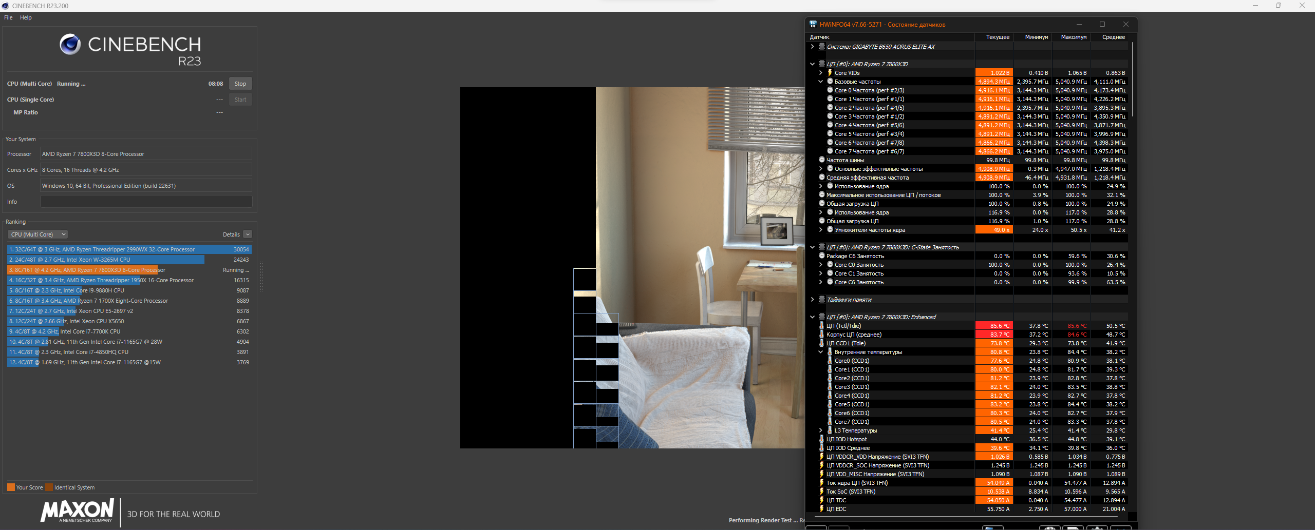 И, алаверды, лучше гонять Cinebench24. R23 очень быстро рендерит сцену (у меня на рендеринг уходит 15-16 сек.), и пока она снова подготовится, ЦП успевает чуть подостыть и сбросить частоты – т.е. не получается симуляции постоянной нагрузки на ЦП, вся статистика по средним/минимальным частотам и прочим параметрам идет погулять. Слабенький уже R23 для современных многоядерных ЦП.