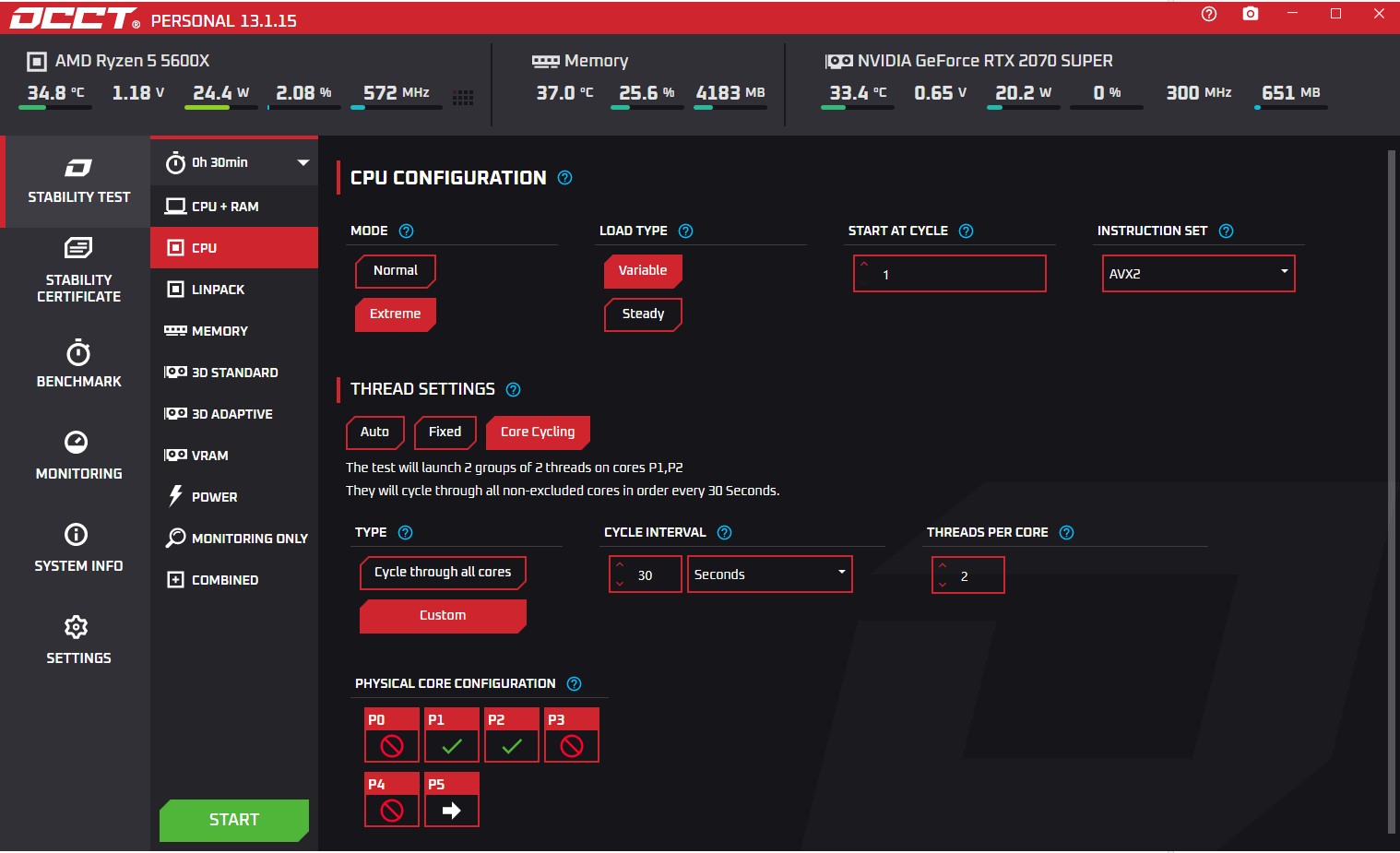 И да, и нет. Скрипт и тот же ОССТ как раз его используют. Но, есть одно НО. В тесте ОССТ эта нагрузка не постоянная, а меняется по очень разным алгоритмам, что очень полезно для выявления недовольтажа на конкретном ядре. При этом "деревянные" ядра вообще можно отключить в тесте, - им хоть минус 5, хоть минус 25, - они все переварят. Можно устроить тест парами ядер, можно по 3 штуки за каждый цикл, можно по одному, можно все сразу. Я бы начинал тест с так называемых лучших ядер, магнитуды на них пользователи обычно слишком оптимистично выкручивают в глубокий минус. В современной версии ОССТ добавили возможность крутить эти настройки, как угодно.