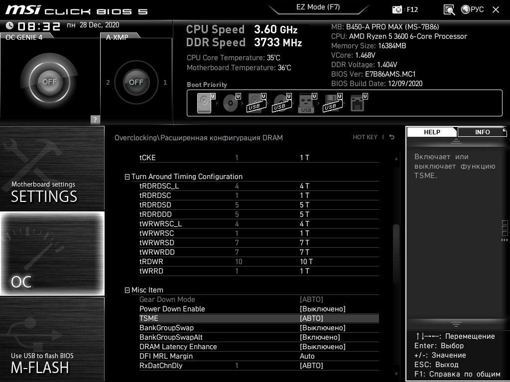 AndreyHiTech на моей асусине тоже есть TSME. И да, включается. Но на обычном проце (не про и не эпик) не знаю, работает-ли. Никогда в эти подробности не вдавался за ненадобностью..