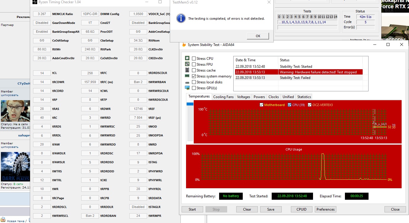 Не тестируй память TM5, я с ней 3 недели провозился, память так и не настроил