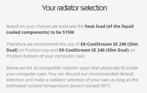 По конфигуратору суммарное тепловыделение у вас чуть больше чем 500 ватт и рекомендуются радиаторы другой модели, более дорогие.