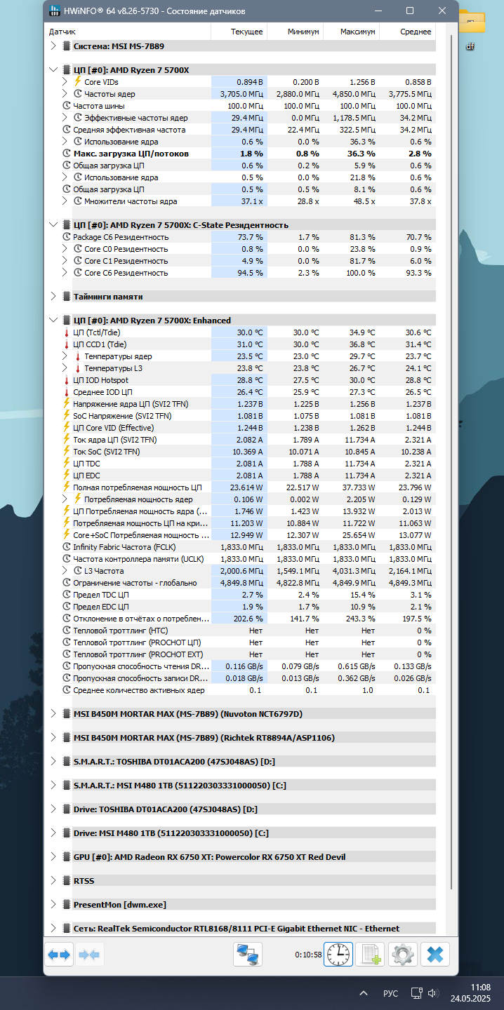 Не моему БП еще рано отправляться в Вальхаллу Ну ради интереса посмотрел мониторинг было в простое 12.2 в нагрузке стало 12.1 Куда мой косарь баллов пропал? Проц как будто в потолок упирается какой то Что то мешает ему, выдать то, что он должен