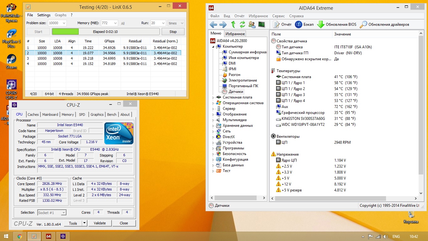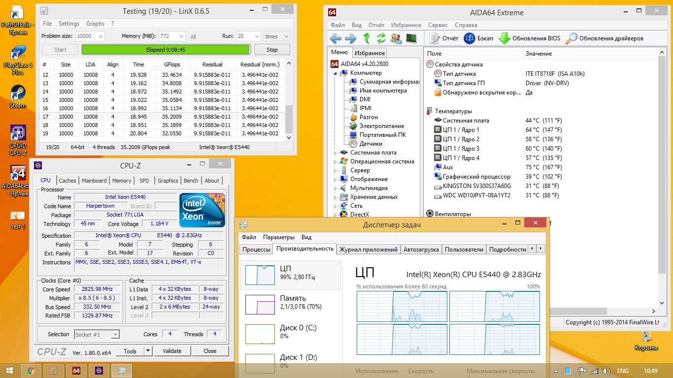 Всем доброе время суток. Взял xeon E5440 три дня назад. В распоряжении две матери на 775, все прошились без проблем. Проблема в следующем. Очень слабая производительность процессора. Видео карта 1050(куплена неделю назад) в Dota 2 фпс на минималке 30-60, в других играх подобная ситуация или еще хуже. Разгон процессора до 3,4Ггц ситуацию не меняет. Оперативки 4гб DDR2 800Mhz(Dual Chanel). Чипсет одной с материнок G41(питание на обоих материнках 4Pin). Пробовал замену БП, другие планки оперативной памяти, менял OC Windows 7 32bit и 64bit Windows 8.1 64bit, обновлял все драйвера, толку 0. Смотрю обзоры процессоров на youtube и не могу вьехать, что я не так делаю, у людей с видео картой по хуже, фпс на ультра в FullHD 60-70 стабильно. Так же брал дишманскую видео карту 6570 1GB, он тоже её не раскрывает, видео карта загружена на 40% процессор 80-100%. Просто есть ноутбук на 2020m с 720m видео картой, и там всё упирается в большинстве случаев в видео карту. Единственный вывод который я мог сделать, что в пеньке 3-го поколения, есть инструкции которых нет в ксеоне, из-за этого он лучше справляется с играми. Если у кого то, есть какие то идеи, в чём может быть проблема, буду очень признательный за ответы, так как подгорает уже третий день, и даже не знаю куда копать, такое чувство что мне подсунули прошитый Core 2 Duo....