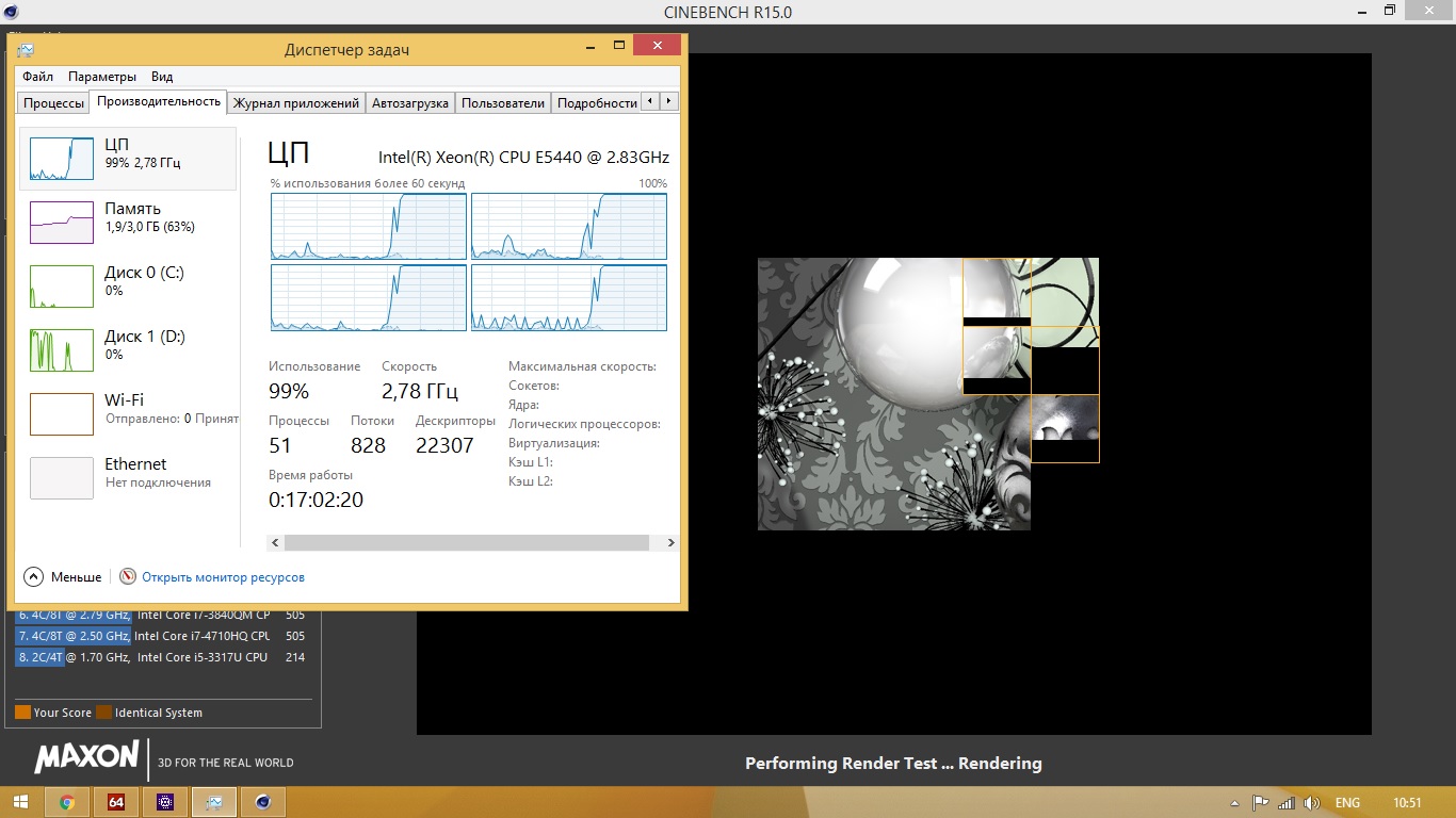 сейчас вин 8 х64, результат сайн бенч без разгона, ссд стоит. Ситуация со всеми играми, и старыми тоже, тот же Dirt 2, видео карта отдыхает, процессор 80-100 стабильно. Тут где то в другом месте собака зарыта, не ну может ксеон так убого работать.