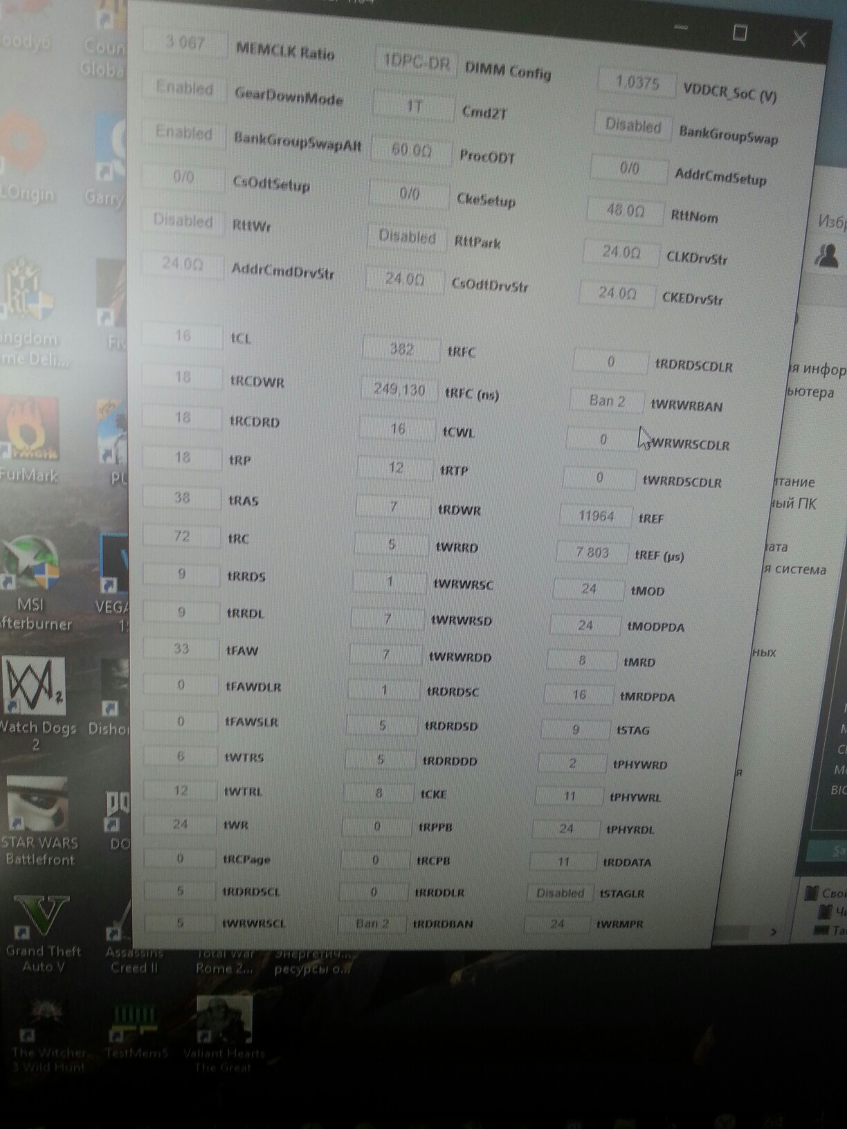 в БИОСе не нашёл, память взяла 3133Мгц при 1.35В с таймингами 16-18-18-36-1Т SOC=1.1В (мать выставила в авто) это не много, может нужно снизить?