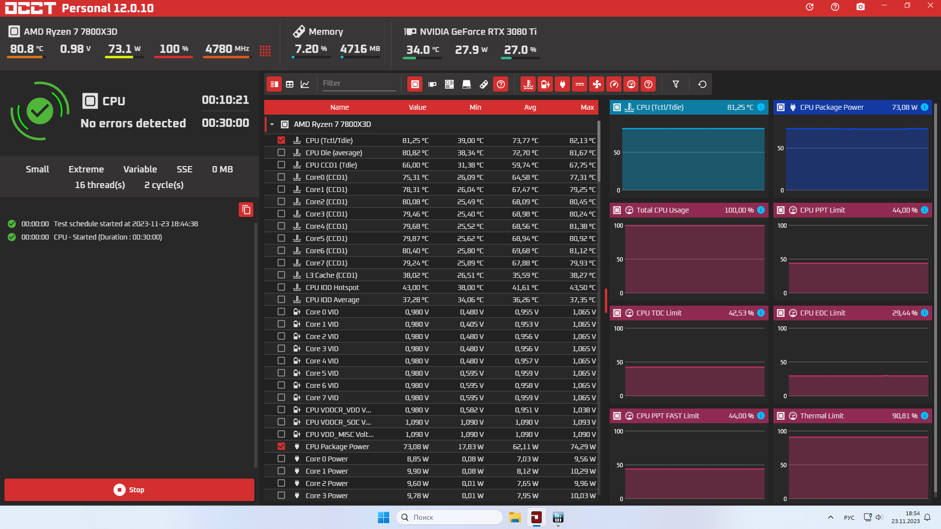 Вот так вот, мне известны четыре лимита на райзене, PPT, ЕDС, TDC и температурный, ни до одного лимита не доходя в стрестестах начинает проседать частота, везде по разному, какое то внутренне ограничение от амд, в Linx и осст примерно 4.8, аида FPU 4.6, синебенч 4.85, прайм 4.5-4.6, в играх почти по полной выдаёт, BF1 5.05(макс для 7800x3d), BF2042 4.9-5.0 У простых не 3D райзенов такого нет, там в сильной нагрузке упирается в штатные 95 градусов и дропает частоту