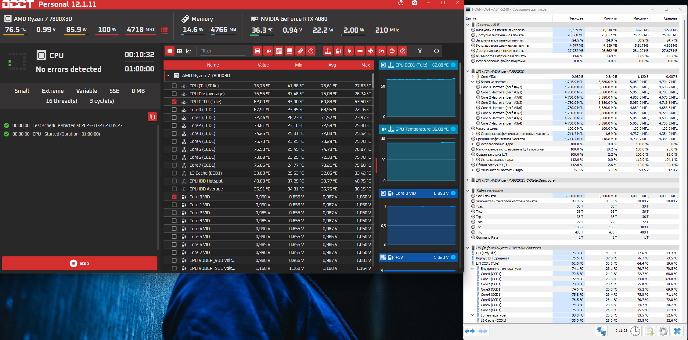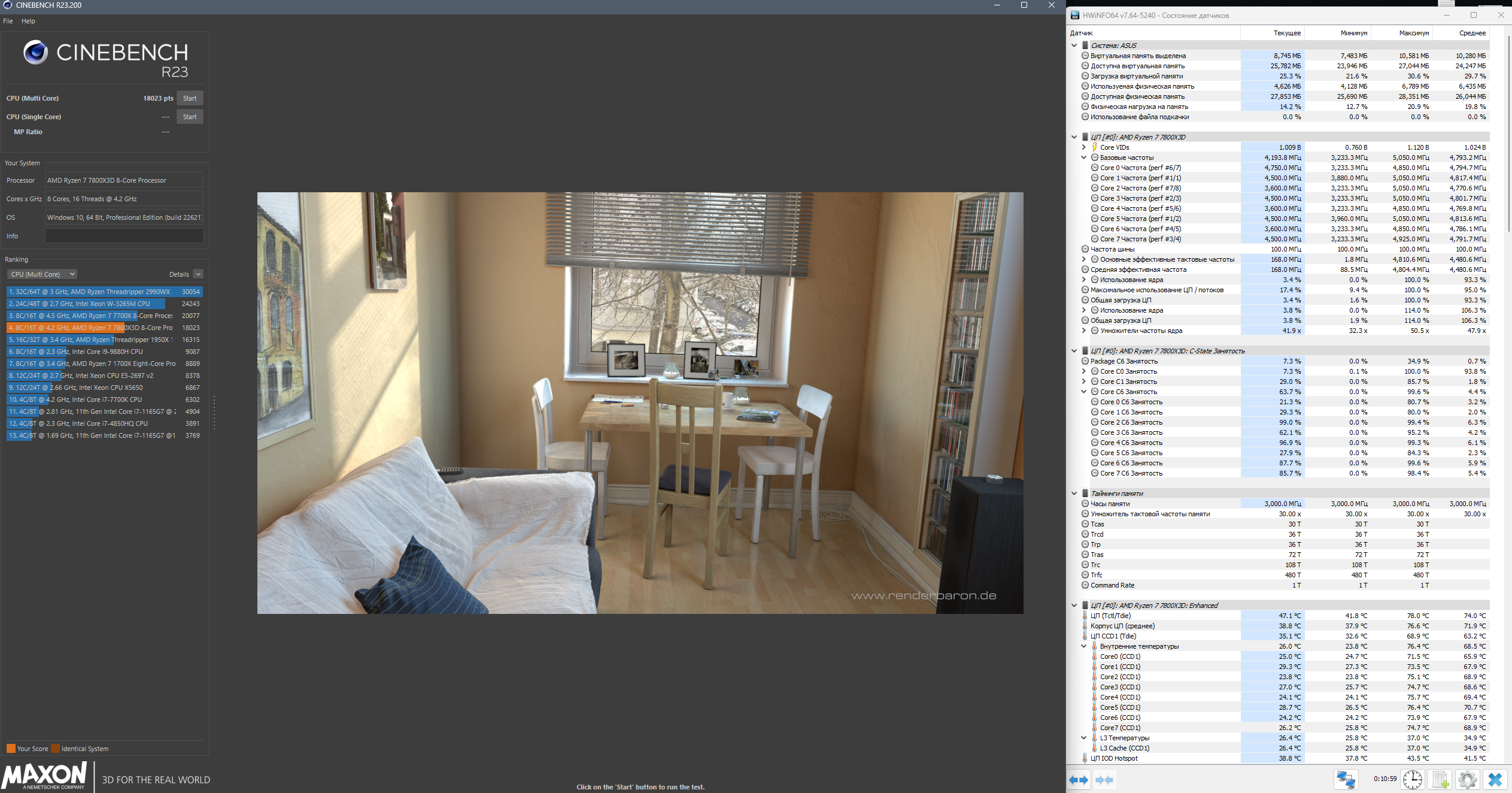 Попробуй осст тест с инструкциями SSE, а так да, прайм, Linx, y-cruncher меньше грузят 7800x3d чем синебенч, просто частоты и напругу дропает без упора в лимиты, occт sse примерно на одном уровне с синебенчем