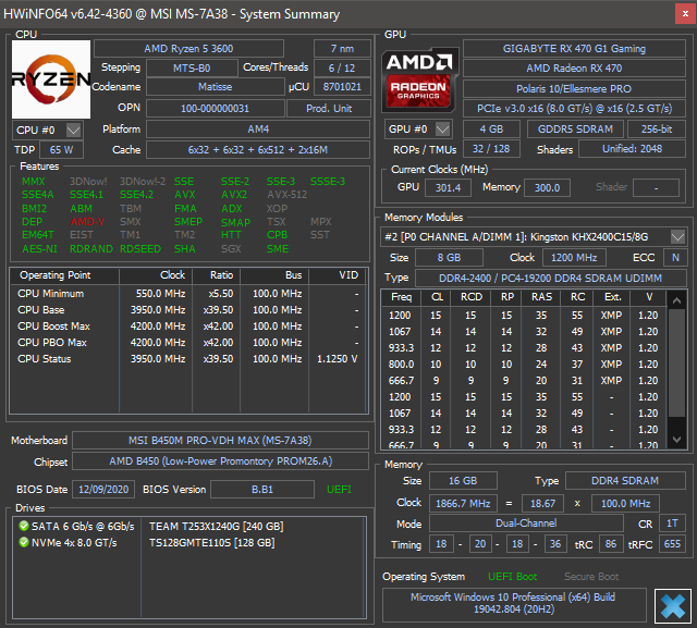 Взял 4750G, и тут выяснилась неприятная вещь, с памятью Samsung c-die oem на частотах свыше 2666 появляются полосы на мониторе, заказал ballistic U4, посмотрим как там будет, на Интеле да и на Zen+, эта память без проблем брала 3200. UPD Проблема решилась обновлением биоса, также решилась проблема с разгоном памяти, раньше выше 3000 не стартовала вообще, сейчас даже выше 3400 берет правда тайминги задирает