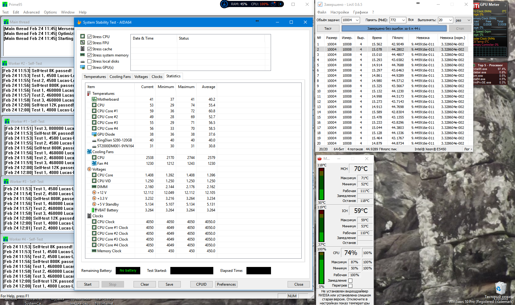 irbis79 4500 - влажные мечты, скажу так, ибо вольтаж надо задирать настолько, что помимо браузера сидеть больше нечего делать даже с достойным охладом, не говоря о том, что даже 6 фаз на вашей материнке может не хватить. У меня, к примеру, даже на 4.28 ГГц (с вольтажом около 1.38-1.42 В) сидеть сейчас нельзя, только когда холодно на улице, да и то в какой-нибудь GTA V с её постоянной загрузкой проца на 100% комп может вырубаться от перегрева питальника проца на материнке. P.S. В Aida64 какой VID на проце отображается? У меня, к примеру, 1.25 В, что много, т.к. видел у кого-то экземпляр с 1.15 В.