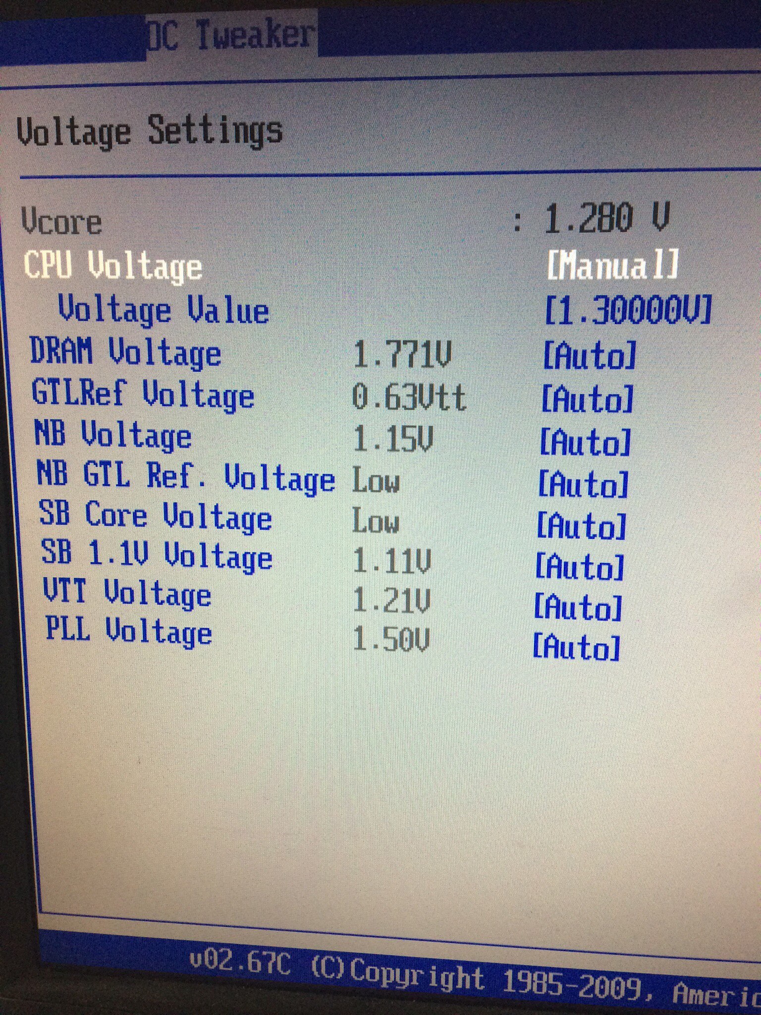 DemAlex SM.YURBAN 8MEarnixs Спасибо за помощь! Если не сложно укажите, пожалуйста, какое напряжение устанавливать для частоты 3.5-3.6 на процессор и на мосты? Не на авто же их оставлять. Если выложите скрины настроек биоса для разгона на p5ql, буду особо благодарен.