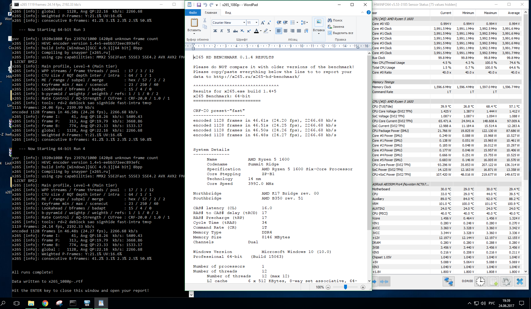 вот прогон х265 на воздухе 220 вт