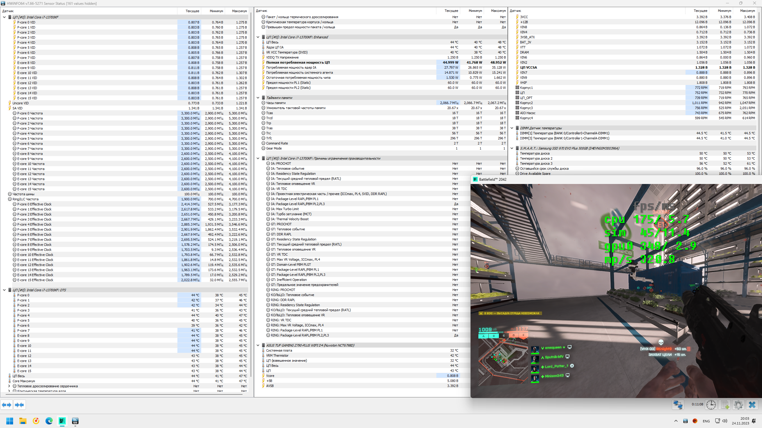 Я ж не зря упомянул про одинаковый фпс, 13700к и 7800x3d 260 фпс могут обеспечить в бф2042, а 13400 нет, к сожалению нормальный мониторинг поломан в батле, разве что роликом записать, покажу чуть позже как
