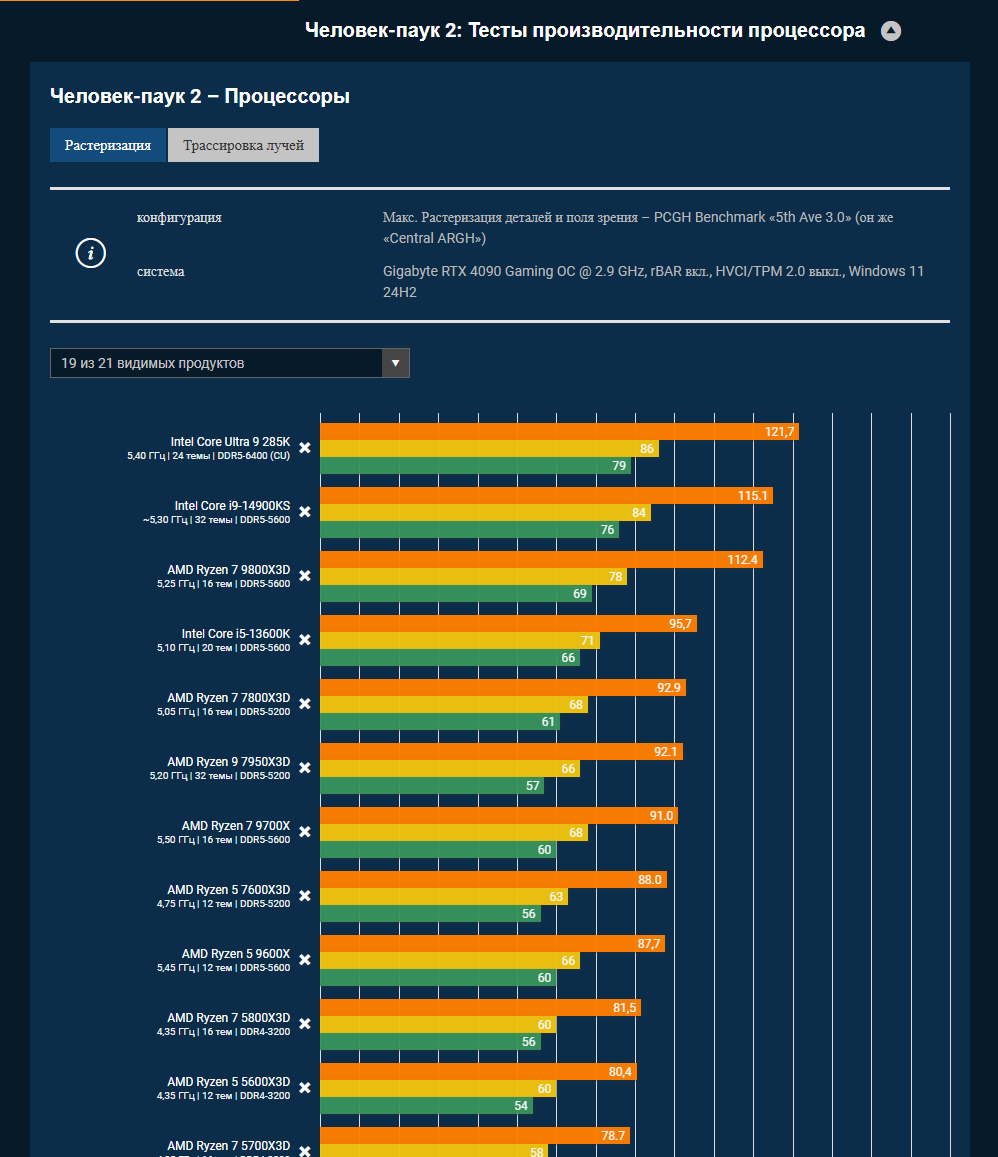 кстати gamegpu тоже странные, и 9800x3d у них есть и 9950х у них есть, а 200 ультры они не тестируют, типа если не особо популярные то нахер тестить верно?