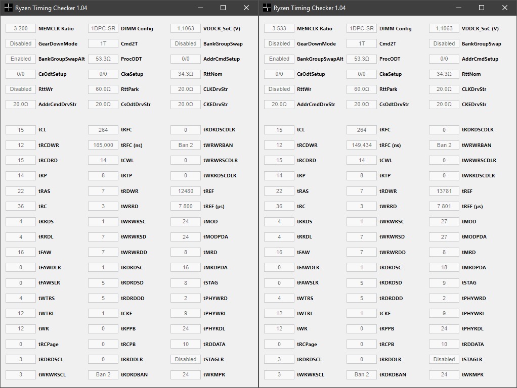 aka_s3rious если это не является причиной фризов в игре (а зачастую причина в другом), то все эти догоним и перегоним америку возьмём 3466 cl14 влупив 1.42 на память больше ради спортивного интереса, нежели для решения некой конкретной проблемы. У кого хорошее железо способное в разгон без упора в видео, выложите сравнение народных 3200 cl14 и ~3400-3532, посмотреть сколько там накинет минимальных fps в актуальных игрушках.