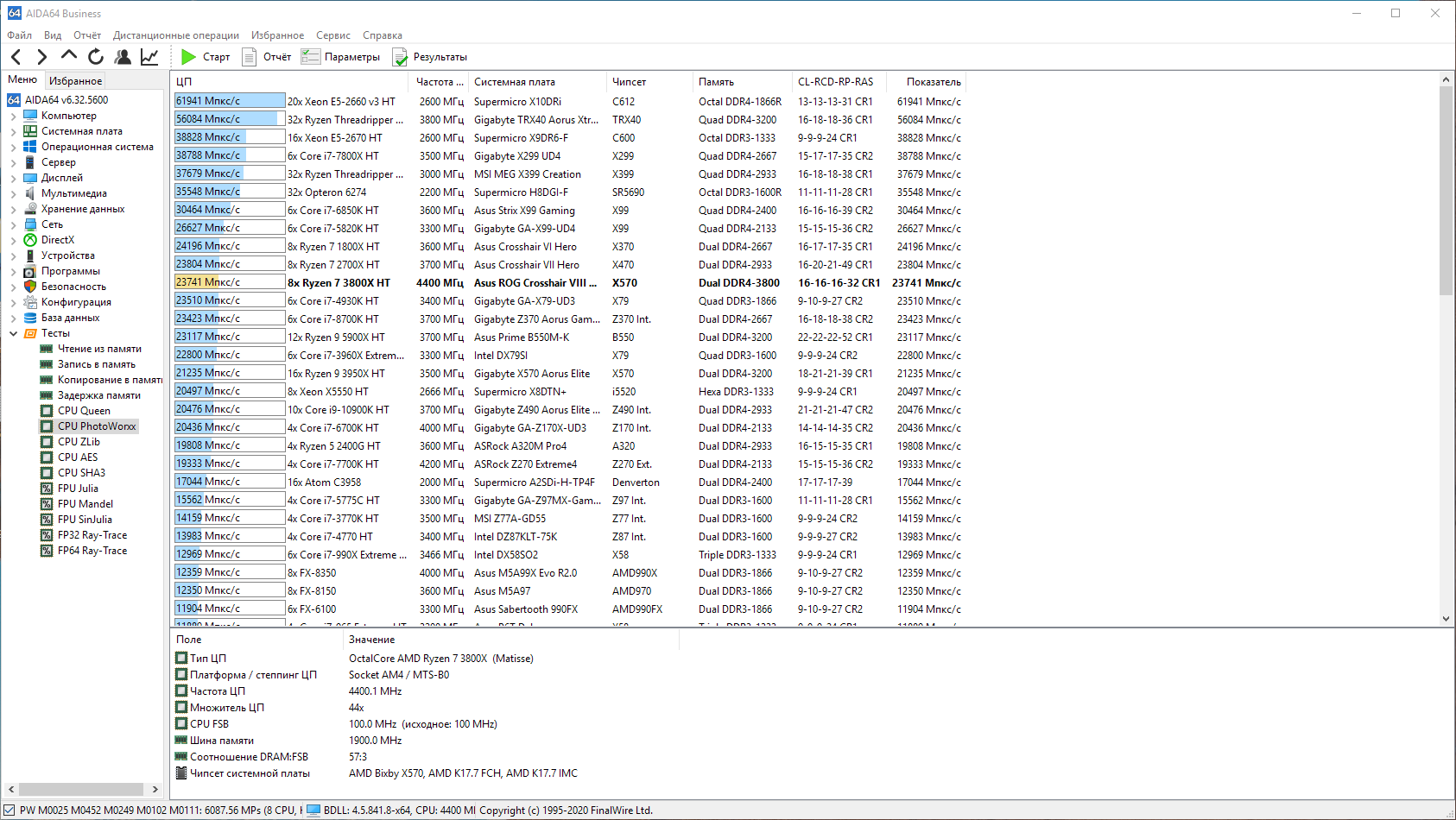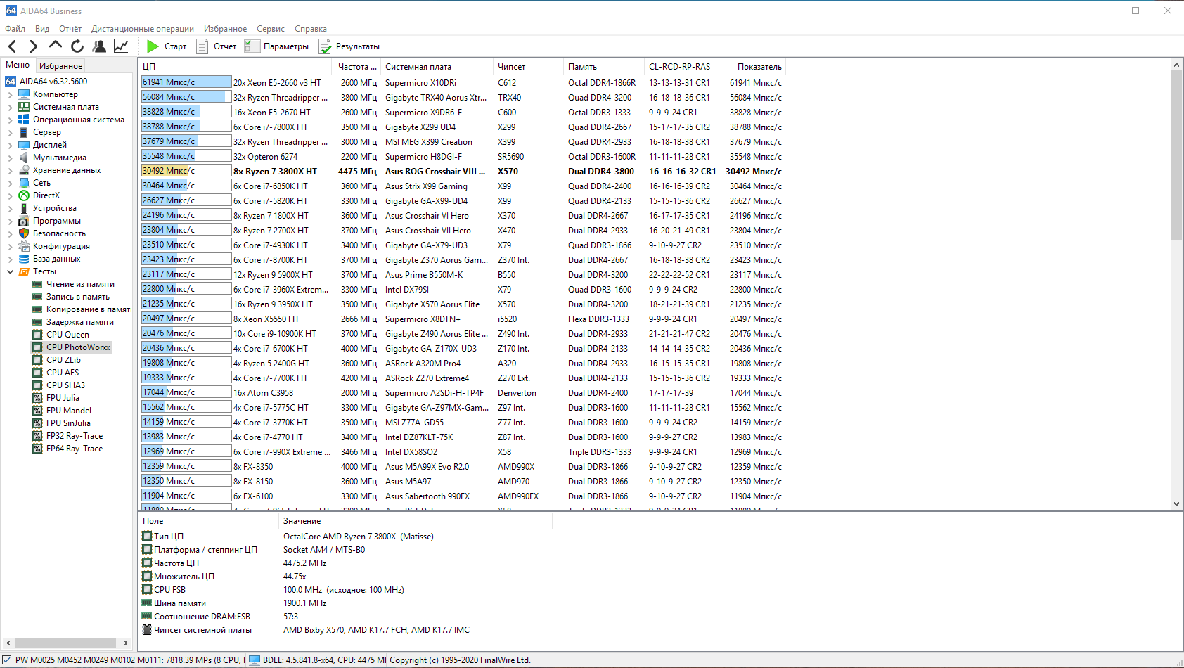 У вас явно что-то не то, результат фотоворкса недалеко от 3600х ушел, несмотря на то что у вас 3800х.