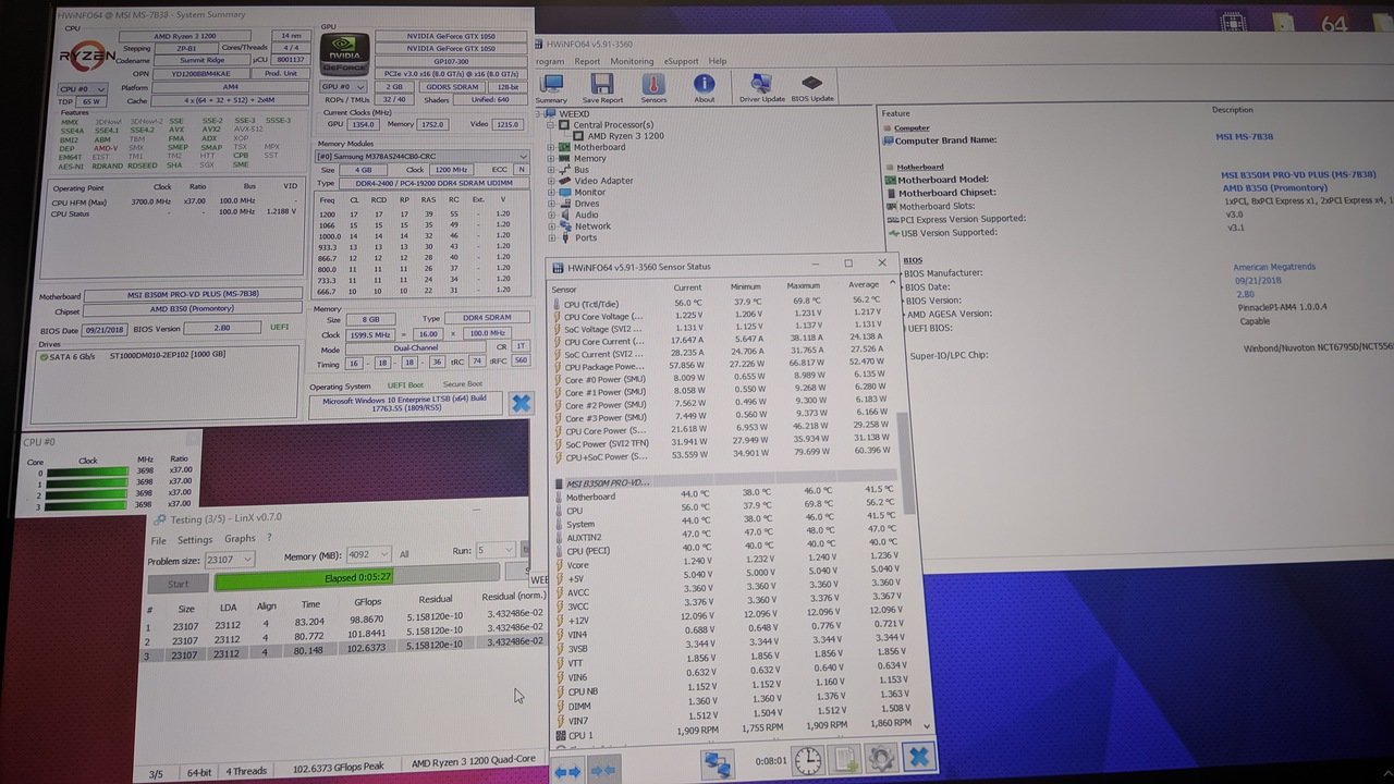 Всем привет, имею ПК (Ryzen 3 1200 Box, Palit GTX 1050, зеленые плашки самсунг 2х4 и материнская плата Cougar STX450), разогнал память до 3200 с таймингами 16-18-18-18-36 и процессор до 3,7ггц с напряжением 1.2375) Такой вопрос, придел ли это для разгона? (Может что-то можно поставить больше/меньше, не очень шарю за разгон, эти настройки кидал знакомый, но материнка у него MSI B350 Tomahawk), еще вопрос про Cpu Loadline Calibration Control, у него в системе настройка идет в уровнях мода (тоесть mode 1, mode 2 и т.д) у меня же настройка идет в процентах (от 10% до 200%), что в такой ситуации лучше ставить? И правильно ли настроил биос (Выключил CPU Over Voltage Protection, Global C-state Control, включил Relaxed EDC throttling (ЕДС включил после видео Гейм Вана), CPU NB/Soc Voltage стоит на Авто, напряжение на память тоже на Авто, CPU Loadline Calibration Control на 60%, CPU NB Loadline Calibration Control тоже на 60%