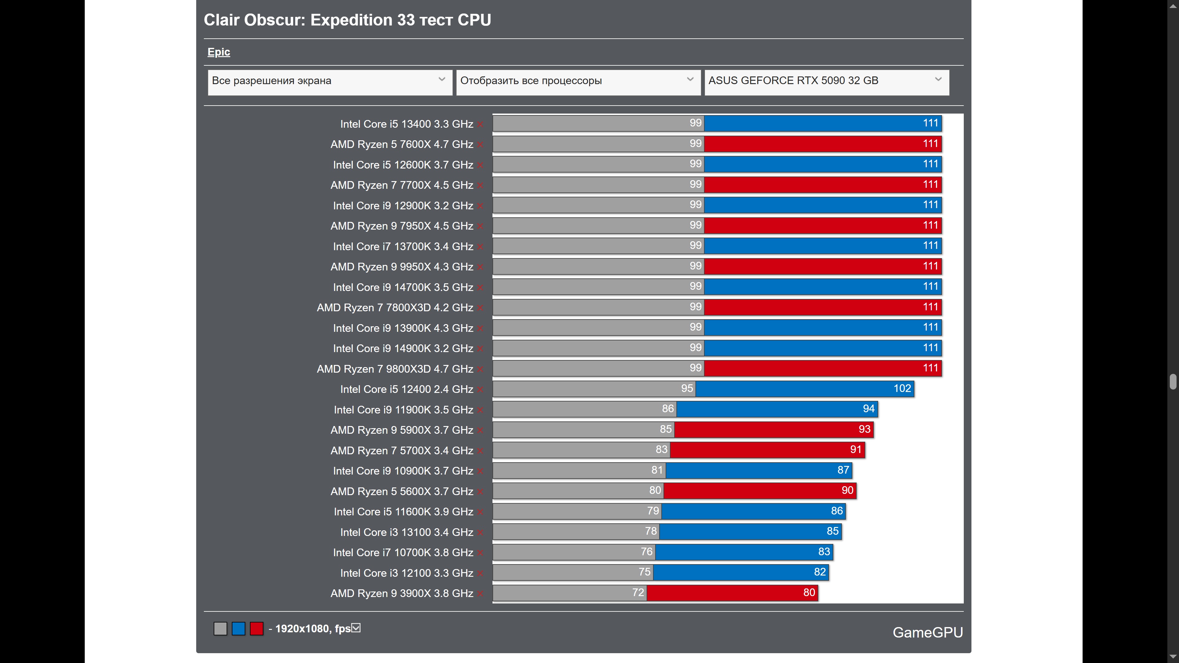 Вот жрущая ЦП игра года - Clair Obscur: Expedition 33 и она из моего 5800x3d выдавливает все соки... Но память и ему тоже желательно одноранговую 4000CL14 ужатую ручками и будет 5800x3d наравне с пропиаренным 7800X3D... 720p ultra настройки