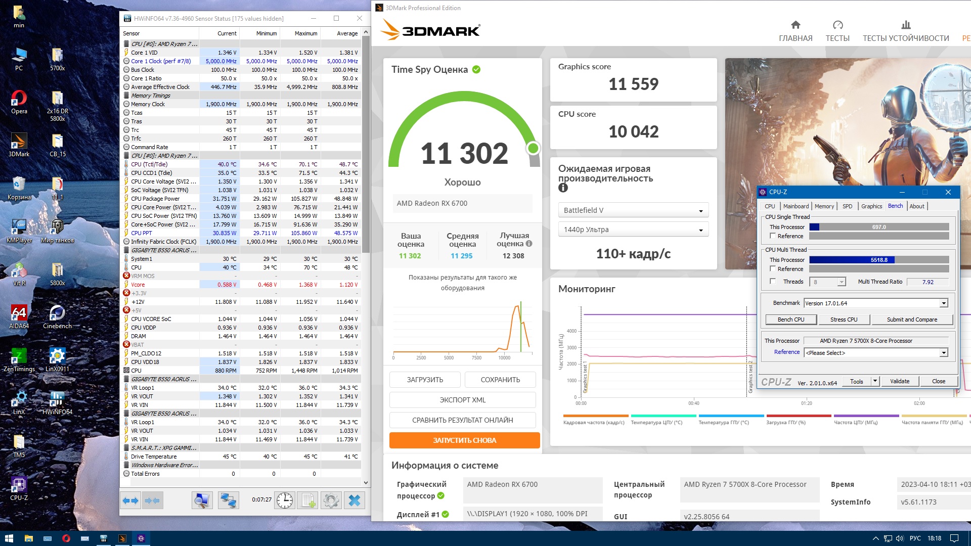 Поделитесь бенчами - у кого сколько 5800X набирает в CR23, и как греется под тестом OCCT ????