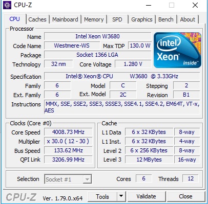 Добавил на скрины коэффициенты QPI и Uncore - для тех кто хочет такой разгон попробовать . W3680 и W3690 по логике должны гнаться также, но есть вероятность что из-за того, что у них изначально выше коэффициент QPI (на W3670 изначально стоит QPI 4.8 Ghz, то есть 36*133), а на W3680 QPI 6.4 Ghz то есть 48*133.