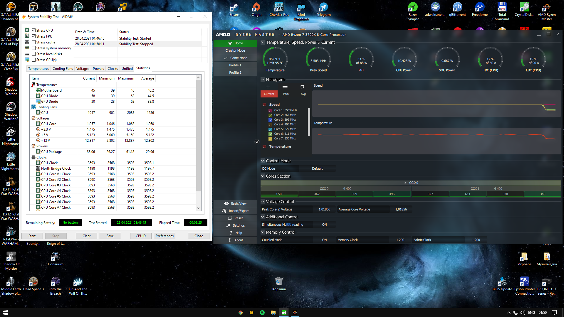 Здравствуйте, процессор 3700x, все в биосе авто (pbo, voltage, множитель частоты)