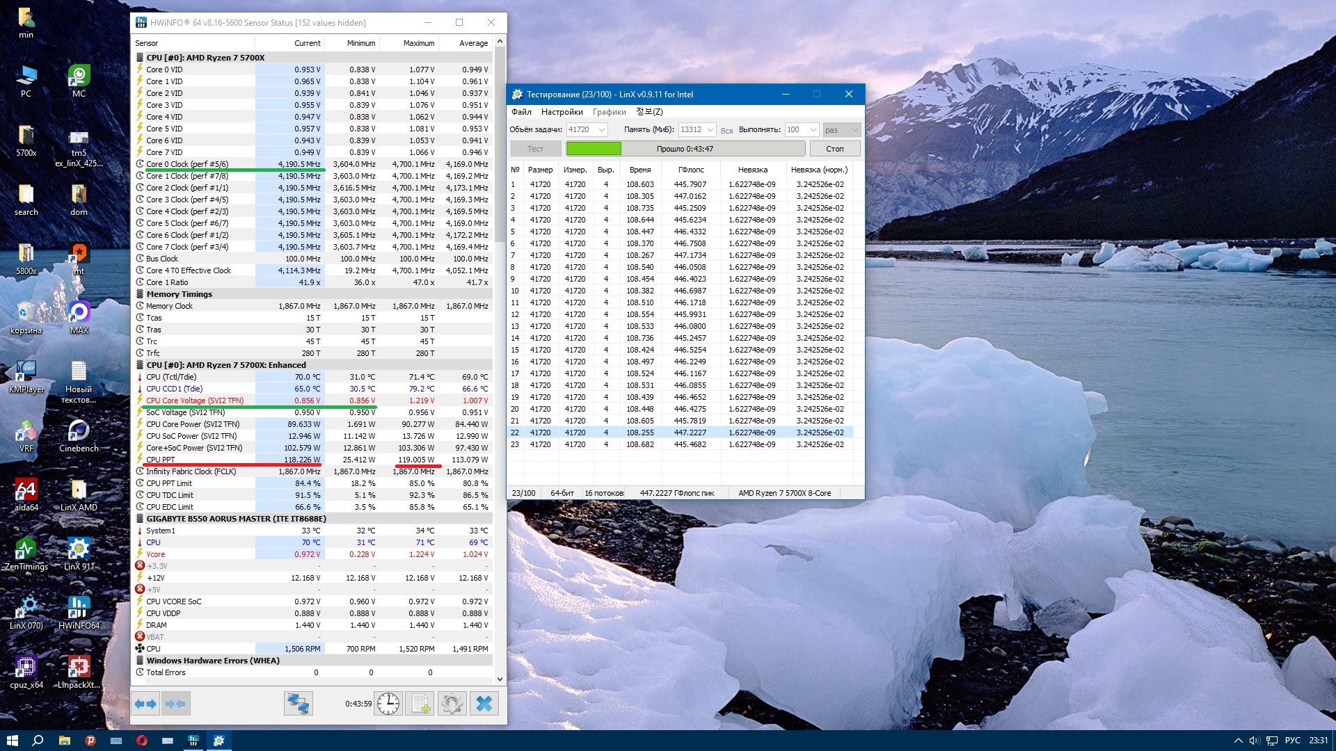 У вас даже линкс на ддр4 не может удержать частоту, а это не очень сильная нагрузка, тем более у вас память медленная , я на райзене 3600 с быстрой памятью больше флопс получал (настройку таймингов делал), а флопсы это и есть нагрузка. В играх и то больше бывает на загрузках уровней. Так что это не тест. Вы тестируете относительно слабой нагрузкой, и не те частоты которые надо.