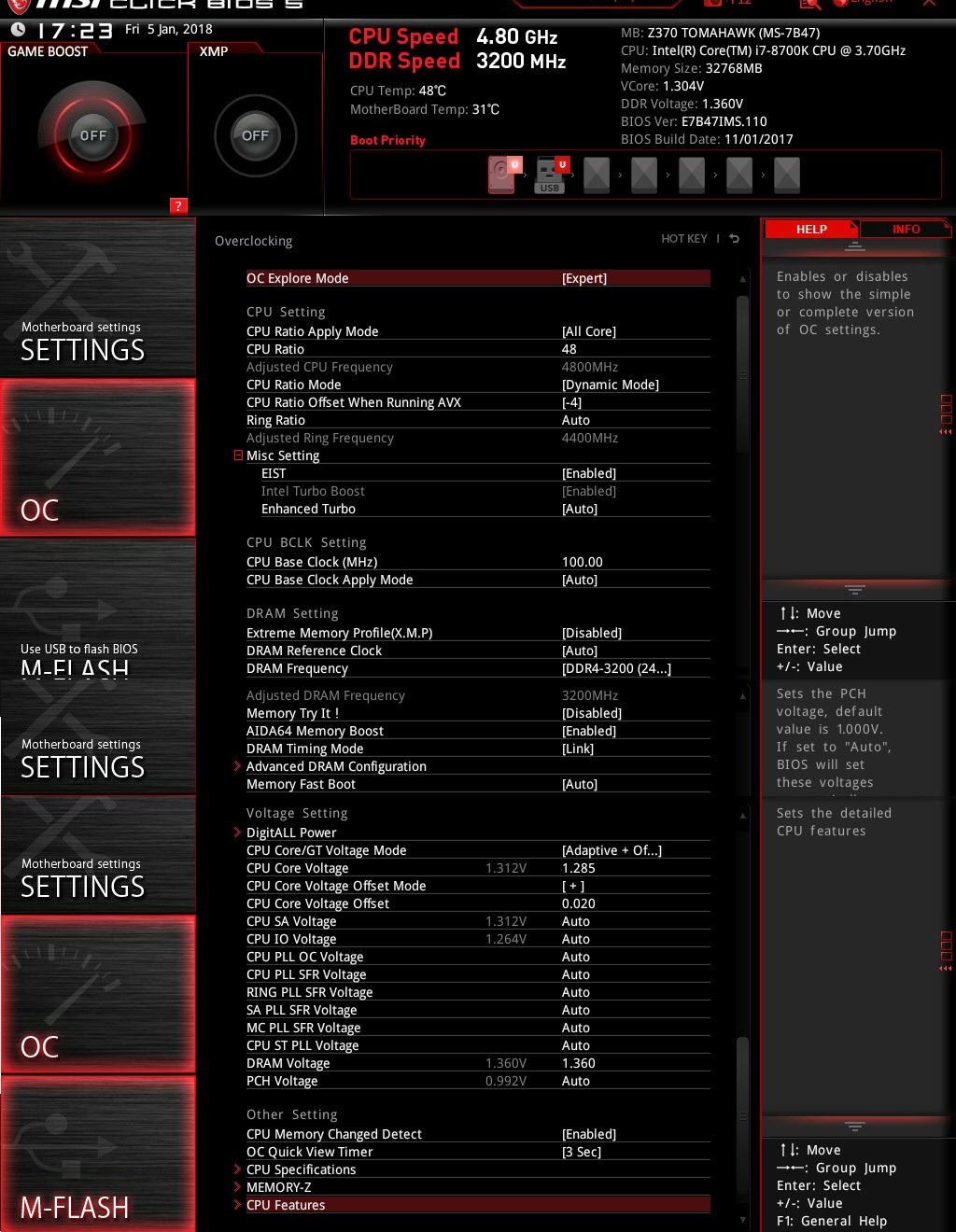 В обще не знаю как быть вроде всё в бисое нормально, но все равно шапарит на 1.29 и 4800 без сброса, не знаю как быть, или так оставить наверное лучше чем под нагрузкой 1.35 в стоке...